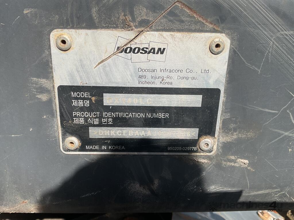 CP: CIRCA 2018,Doosan,DX140LC,Excavator (Steel Tracked),Odometer not visible,4180 (Hrs. Showing on Hour meter),Unregistered,Serial No: DHKCEBAAAJ0007316,Sold with No Plates