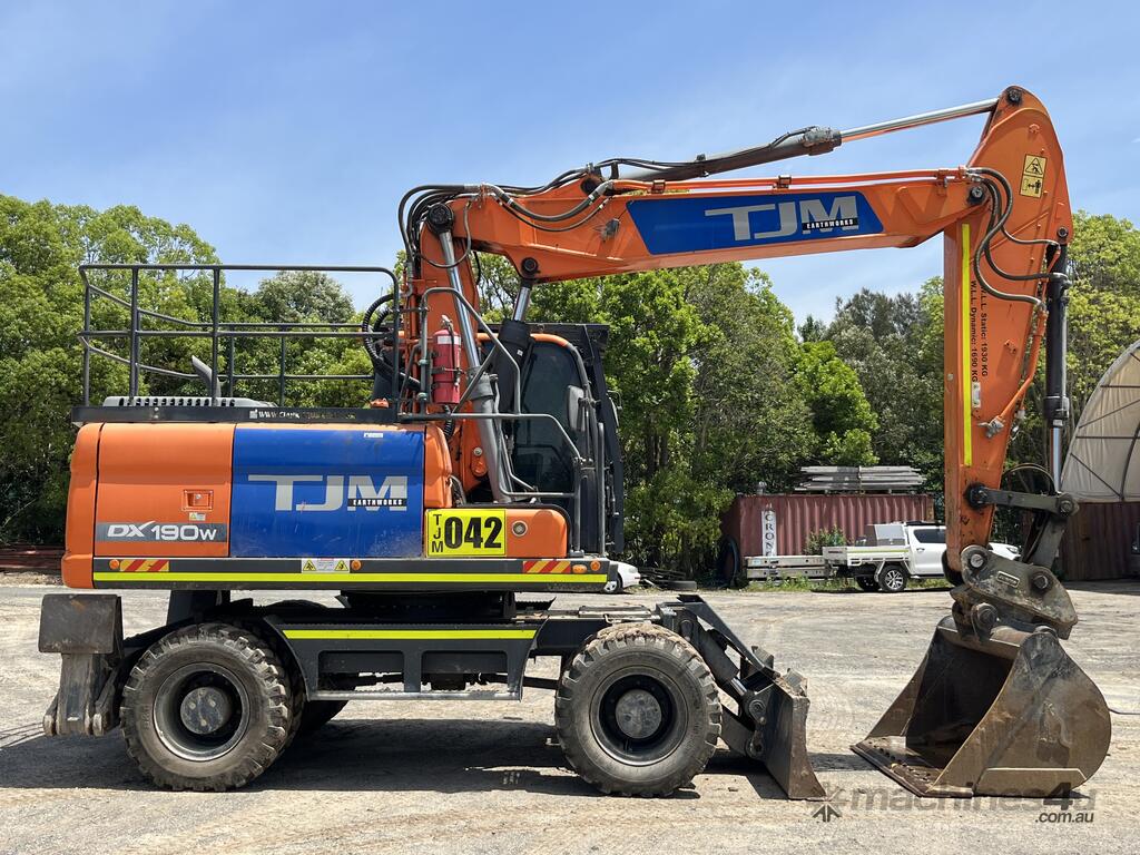 CP: CIRCA 2018,Doosan,DX190W,Wheeled Excavator,6 Cyl,Diesel Turbo,Odometer not visible,1400 (Hrs. Showing on Hour meter),Colour: Red,Unregistered,Serial No: DHKCEWADS15005902,ROPS No: undefined,Sold with No Plates