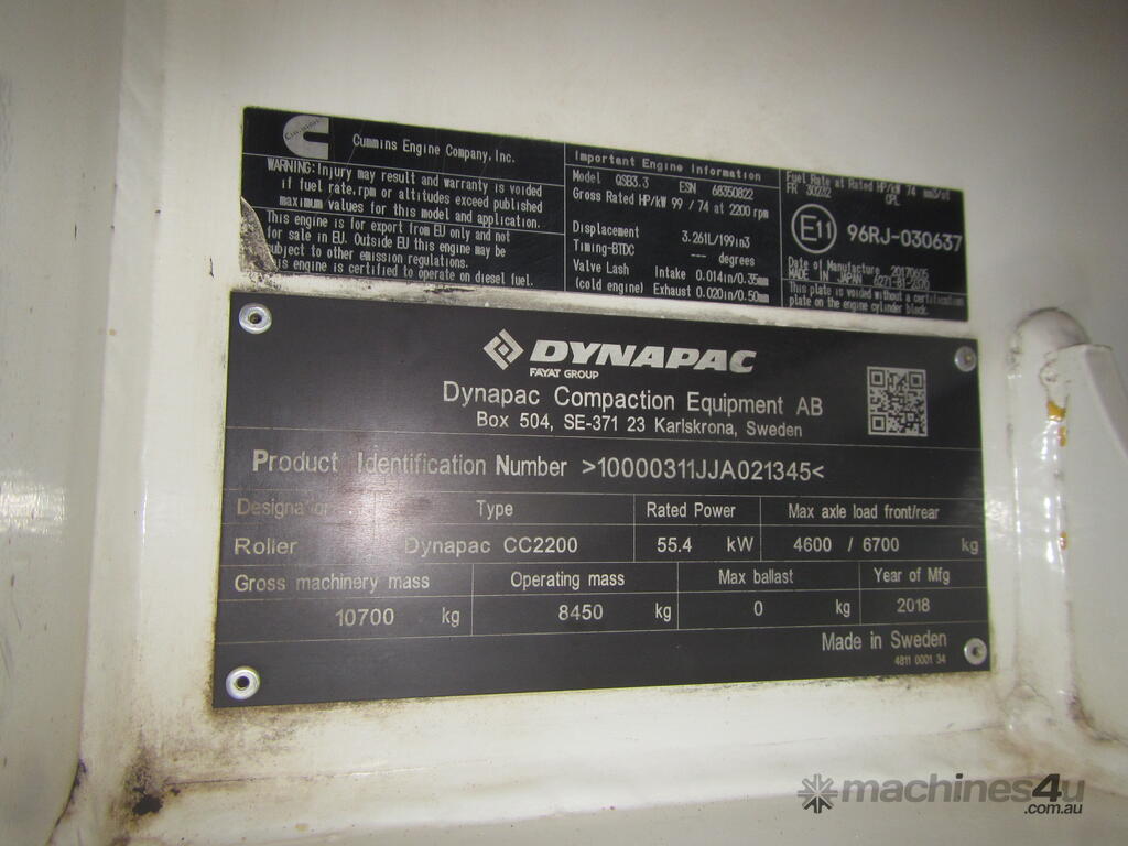 2018 Dynapac CC2200 8Ton Double Drum Vibratory Roller