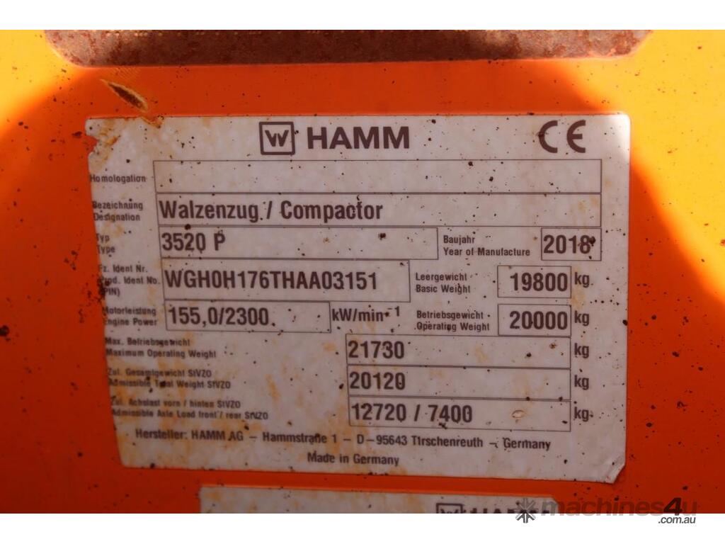 Used hamm Single Drum Padfoot Roller for sale - 2018 Hamm 3520P :      $149,000 AUD($163,900 Inc. GST)