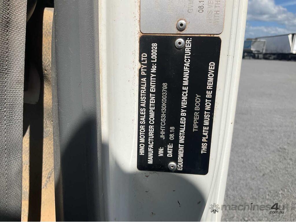 CP: 08/2018,Hino,300 616 ,Tipper,Automatic,Spring,N04C,4 Cyl,Diesel Turbo,141866 (Kms. Showing on Odometer),Hourmeter not visible,Colour: White,Unregistered,VIN: JHHTCS3H30K003798,Key No: 561S,Length: 5.2 m,GVM: 4495,GCM: 7300,Sold with No Plates,Key No: 561S