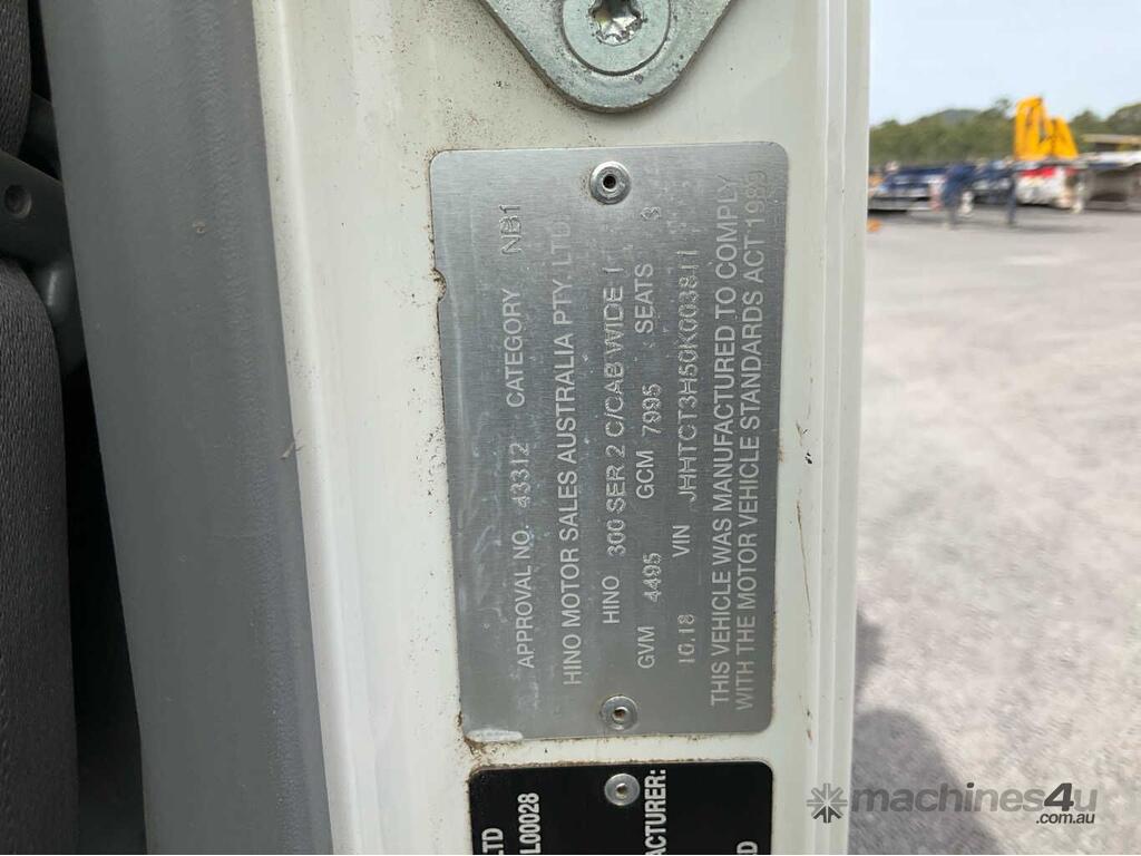 CP: 10/2018,Hino,300 617,Tipper Day Cab,Manual,Spring,N04C,4 Cyl,Diesel Turbo,6 Gears,150758 (Kms. Showing on Odometer),Hourmeter not visible,Colour: White,Unregistered,VIN: JHHTCT3H50K003811,Key No: 488S,Length: 5.1 m,GVM: 4495,GCM: 7995,Sold with No Plates,Key No: 488S
