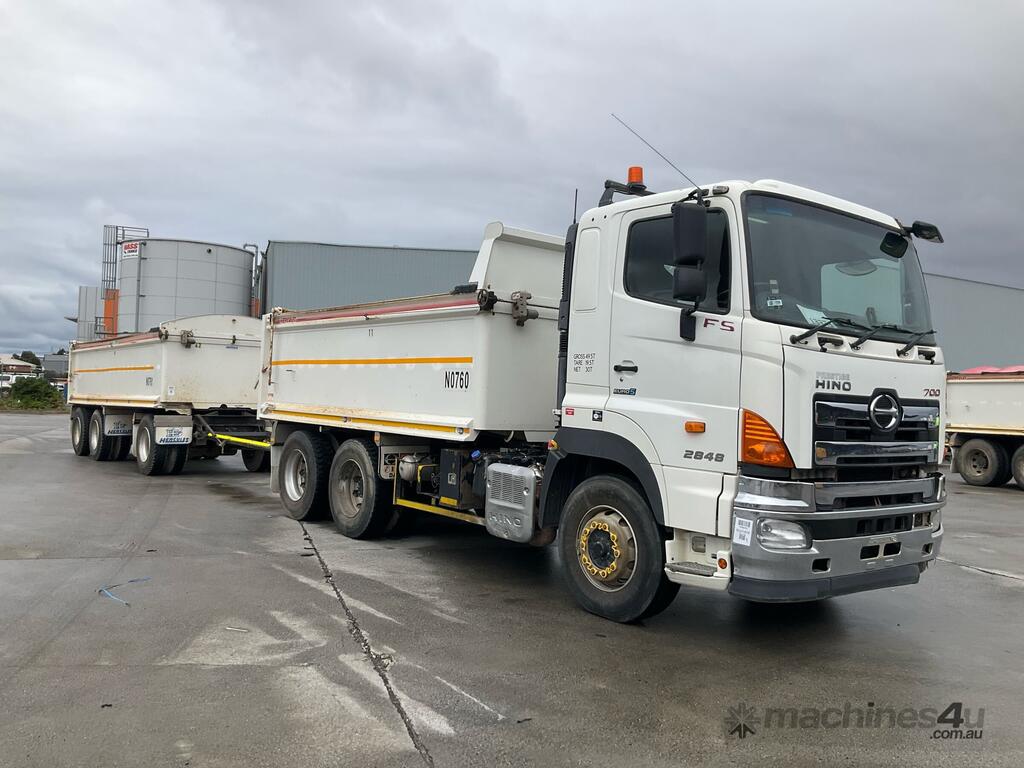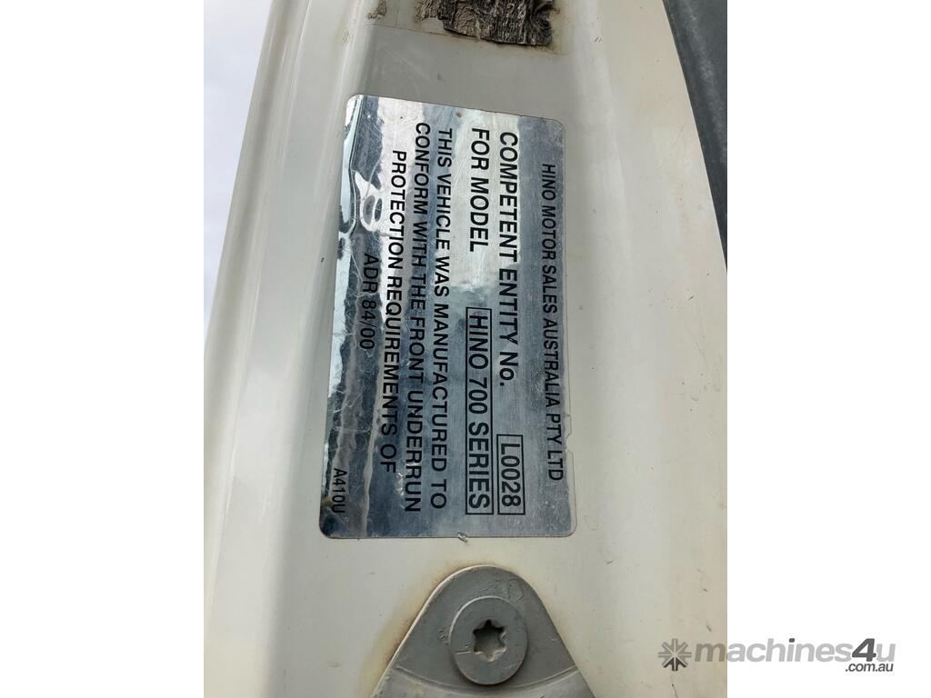 CP: 08/2018,Hino,FS 700 2848,Tipper & Dog Tri Axle Combination,Automatic,Air Bag Suspension,Engine #: E13CVG20303,Hino E13C,6 Cyl,Diesel,435062 (Kms. Showing on Odometer),Hourmeter not visible,Colour: White,Rego. No: NP(XV62IY), Unregistered VIC,VIN: JHDFS1ELLXXX11146,Key No: 9,GVM: 28000,GCM: 72000,Sold with No Plates,Key No: 9