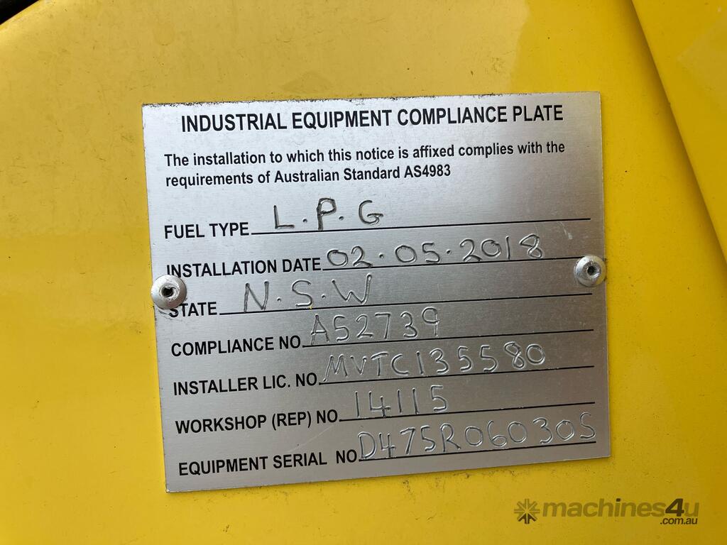 CP: CIRCA 2018,Hyster,H1.8XT,Forklift,Engine #: 003580,4 Cyl,LPG only,Odometer not visible,607 (Hrs. Showing on Hour meter),Colour: Yellow,Rego. No: NP(75R06030S), Unregistered,Chassis: D475R06030S,Serial No: D475R06030S,Sold with No Plates