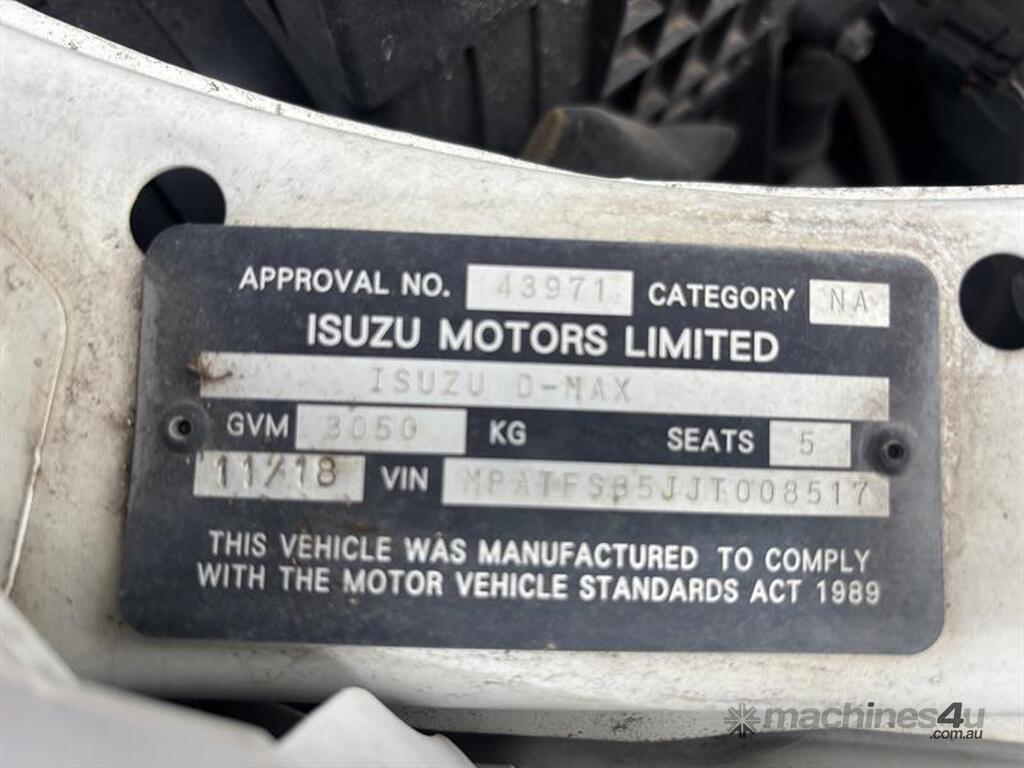 2018 ISUZU DMAX DUAL CAB UTE, VIN: MPATFS85JJT008517, E/N: SU1741, 162,634 KM SHOWING, NO REGISTRATION, NO RWC. LOCATION: HALFERTY STREET, EMERALD, QLD 4720. INSPECTIONS & COLLECTIONS: MONDAY TO FRIDAY, 8AM TO 4PM. ENQUIRIES: JOHN MCDOUGALL ON OR JOHNEMERALDAUCTIONCENTRE