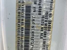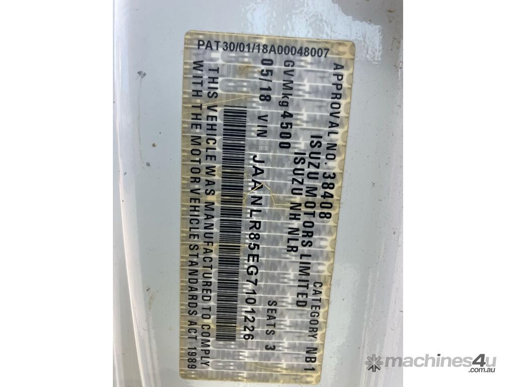 CP: 05/2018,Isuzu,NLR 45-150,Rigid,Automatic,Leaf Springs,4 Cyl,Diesel,Turbo,Odometer not visible,Hourmeter not visible,Colour: White,Rego. No: NP(1WD7YZ), Unregistered VIC,VIN: JAANLR85EG7101226,GVM: 4500,GCM: 7000,Sold with No Plates,WOVR Status: WOVR N/A,Incident Type: Water