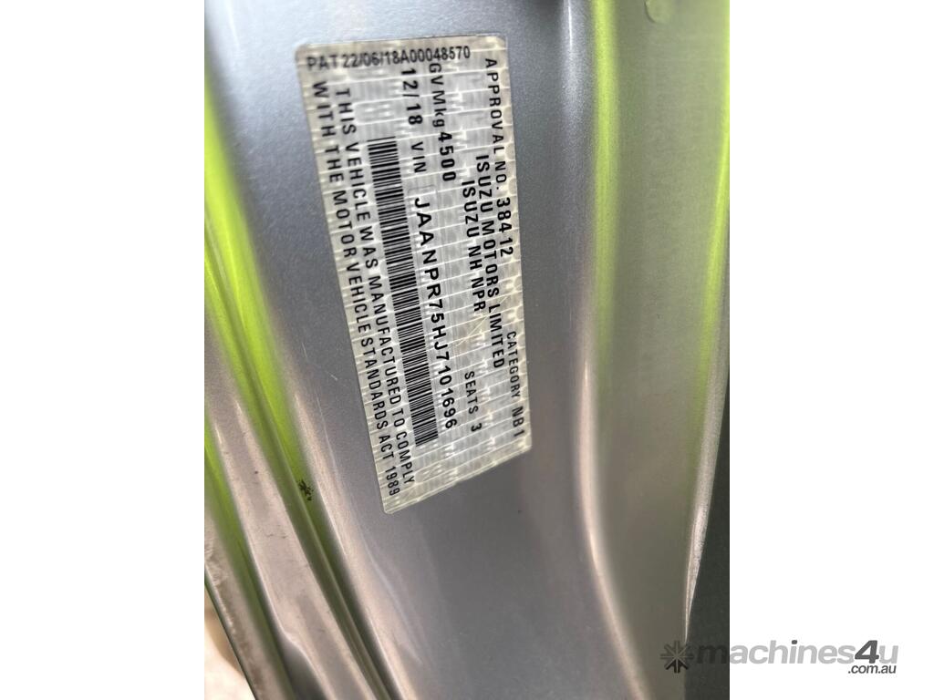 CP: 12/2018,Isuzu,NPR 45-155,Table Top,Automatic,Diesel,267768 (Kms. Showing on Odometer),Hourmeter not visible,Colour: Silver,Rego. No: NP(BRITEX), Unregistered VIC,VIN: JAANPR75HJ7101696,Length: 4.5 m,GVM: 4500,GCM: 8000,Sold with No Plates,WOVR Status: Statutory Write-Off,Incident Type: Impact