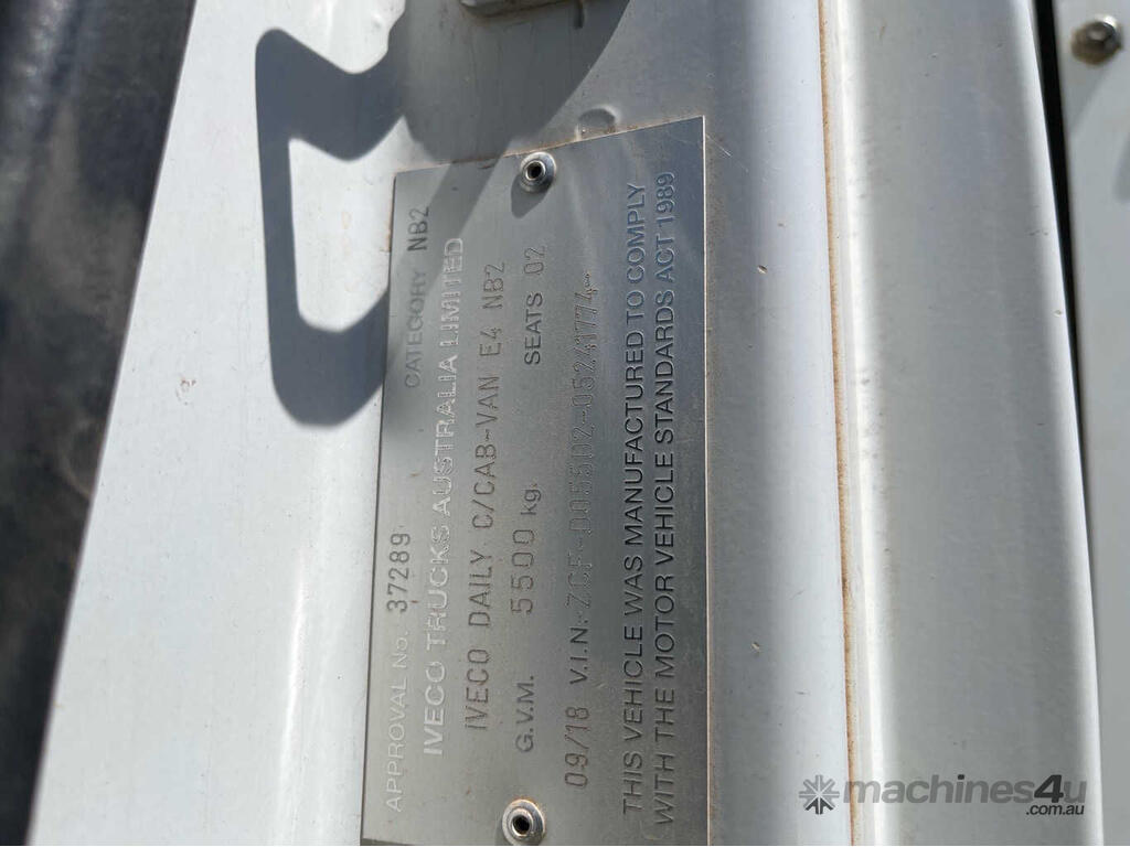 CP: 09/2018,Iveco,Daily 55-180,Service Body,Manual,leaf Spring Suspension ,F1CFL411W,4 Cyl,Diesel Turbo,6 Gears,133374 (Kms. Showing on Odometer),Hourmeter not visible,Colour: White,Rego. No: NP(XO55DU), Unregistered NSW,VIN: ZCFD055D,Length: 5.8 m,GVM: 5500,GCM: 9000,Sold with No Plates,WOVR Status: WOVR N/A,Incident Type: Malicious