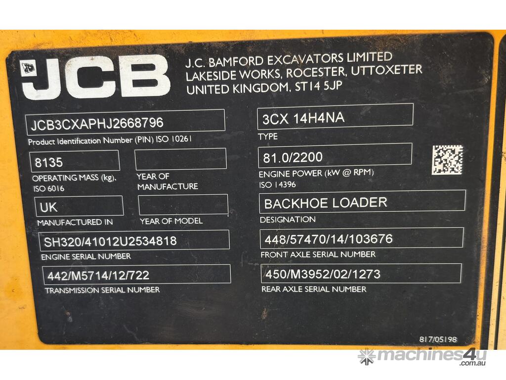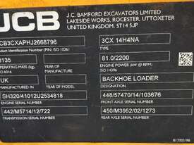 2018 JCB 3CX ROADRUNNER BACKHOE, 9300 HOURS, 110 HP, 6 SPEED TRANSMISSION WITH TORQUE LOCK, HYD HITCH AND GP BUCKET, EXTERDER HOE, HEAVY LIFT REAR END, 4 IN 1 LOADER BUCKET. GREAT MACHINE READY FOR SITE, LOCATED ADELIADE