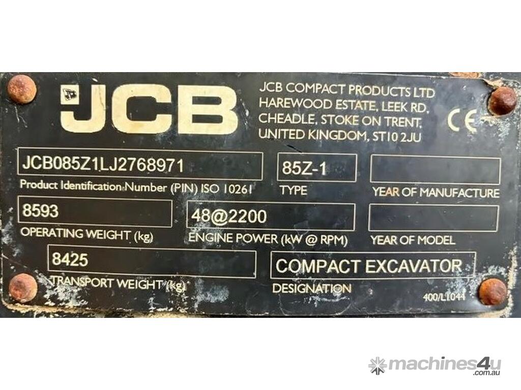 2018 JCB 85Z EXCAVATOR, 3,500 HOURS, TILT HITCH, 3X GP BUCKETS, MUD BUCKET AND RIPPER. ZERO SWING, STEEL TRACKS WITH BOLT ON PADS, GREAT VALUE MACHINE, LOCATED DARRA