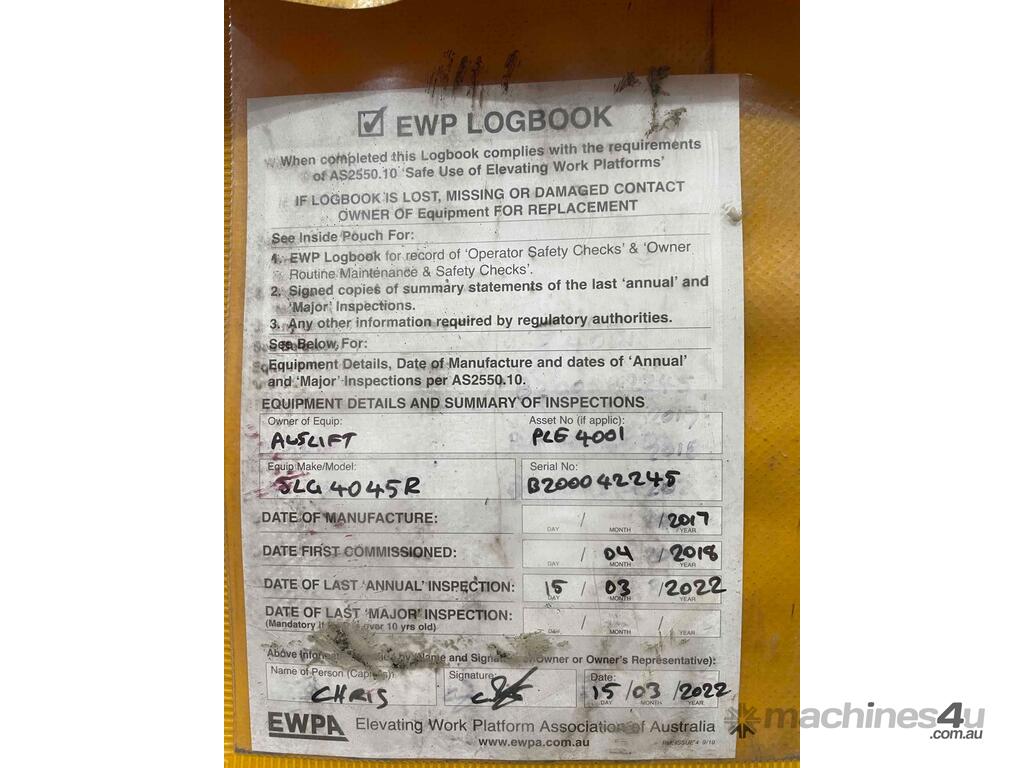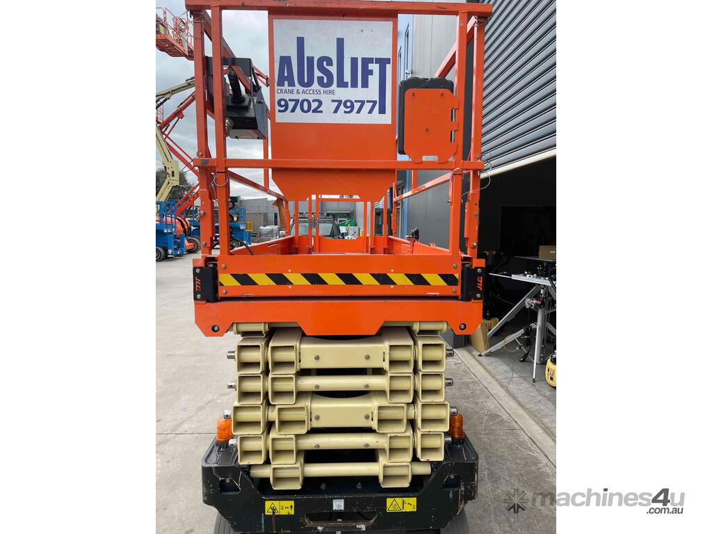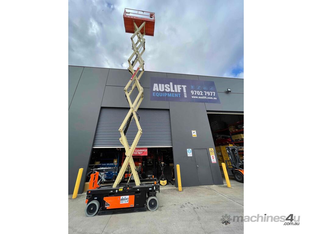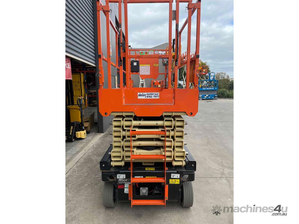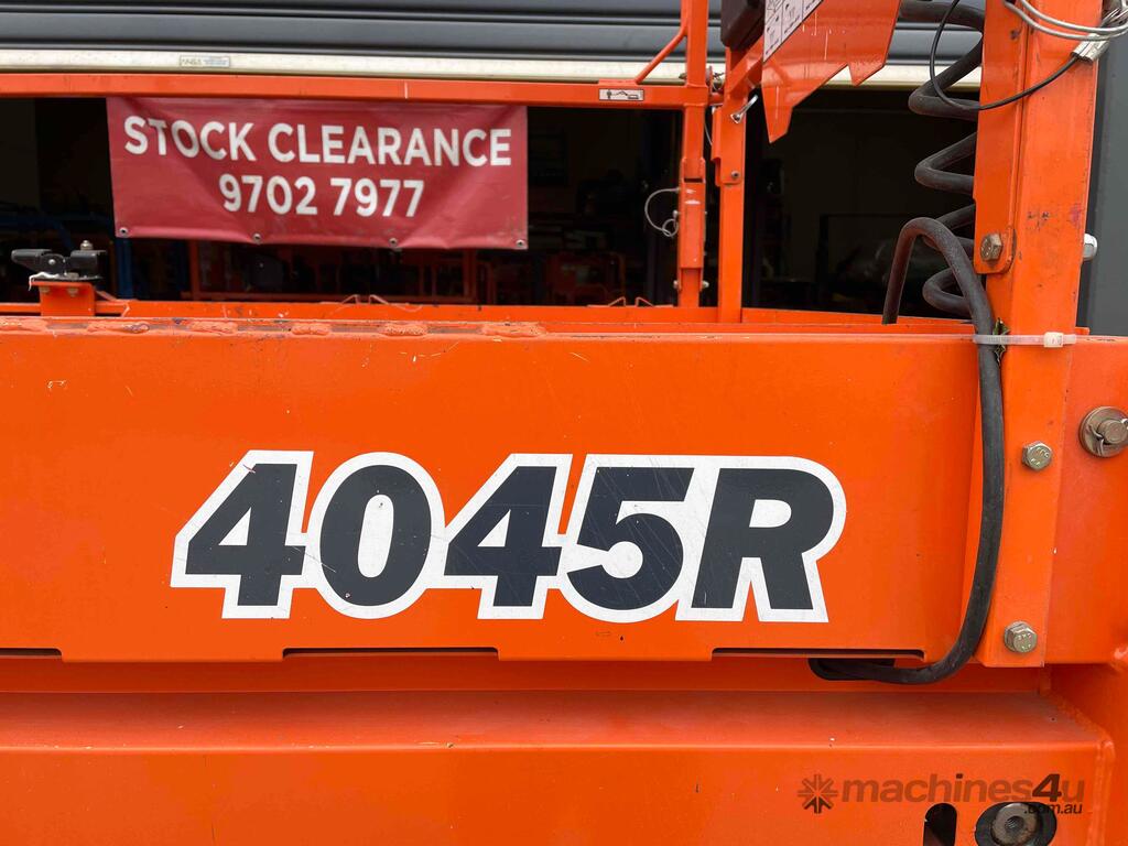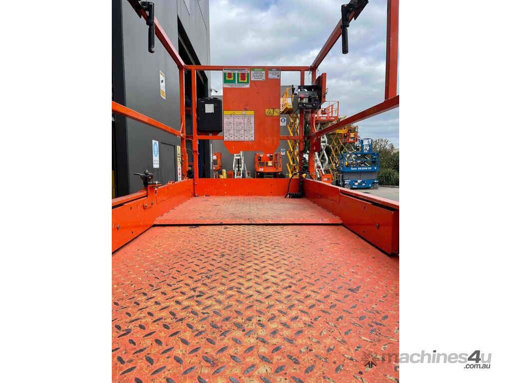 The JLG R4045 is a self propelled scissor lift that is designed to safely raise you up on flat level concrete surfaces. It is only 1.14m wide with a stowed height of 2.53m making this machine compact enough to fit through many narrow spaces while allowing for a maximum raised deck of 11.97m.