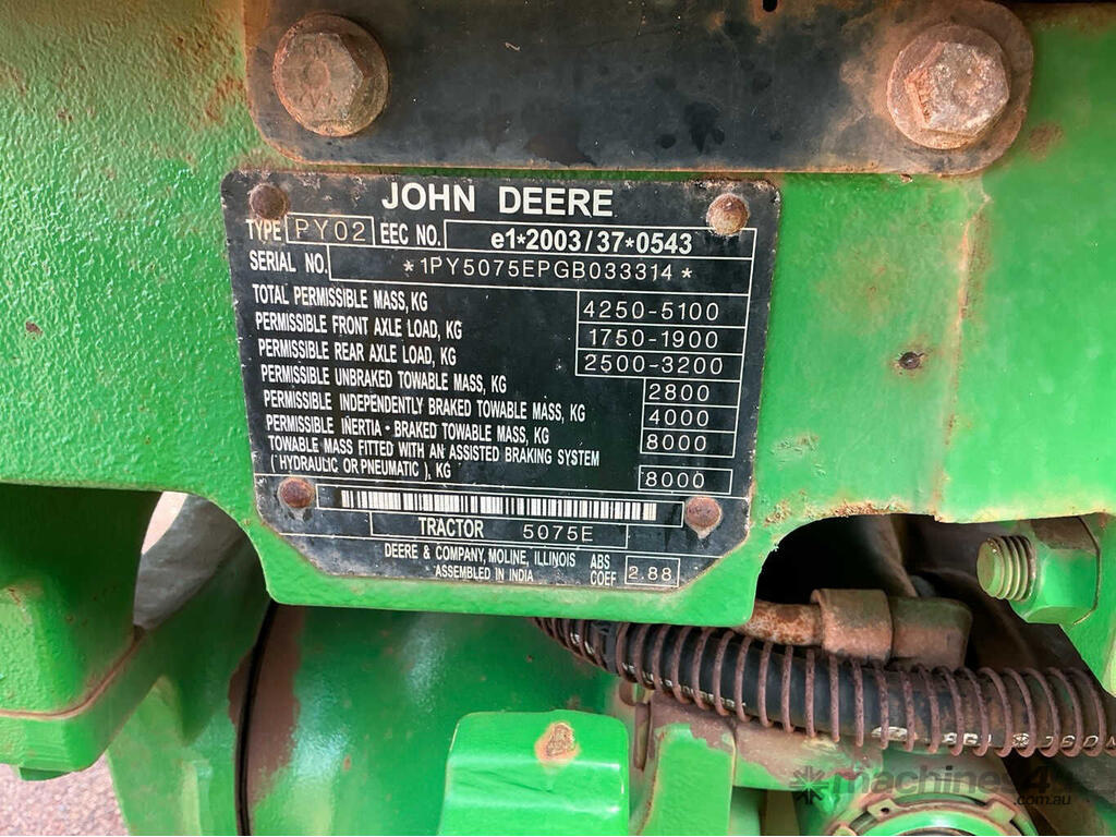 CP: CIRCA 2018,John Deere,5075 E,Tractor,Engine #: PY3029H071788,2.9 Ltr,3 Cyl,Diesel,9 Gears,Odometer not visible,341 (Hrs. Showing on Hour meter),Colour: Green,Rego. No: NP(CD29YH), Unregistered NT,VIN: 1PY5075EPGB033314,Serial No: 1PY5075EPGB033314,ROPS No: undefined,Sold with No Plates
