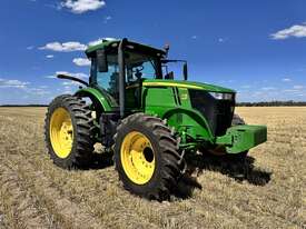 2018 John Deere 7230R Tractor. ODO showing 3,165 engine hours, E23 Transmission, sold on 3m centres, front weights, 3PL & Quickhitch, PTO, 1 owner. Has been on a Hayes Camera Sprayer & auger for its working life. No tillage or chaserbim. Just had major 3,000hrs service with all oil and filters done. 1 x new tyre will go with the tractor. Selling due to upgrade. Located at Toobeah QLD, available at MRE Auctions online sale,
