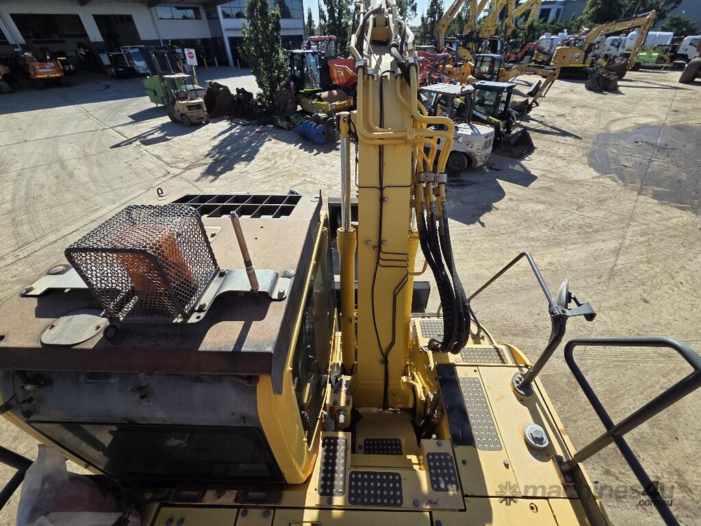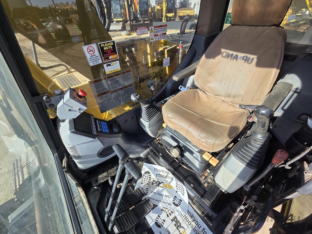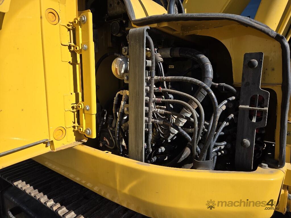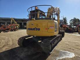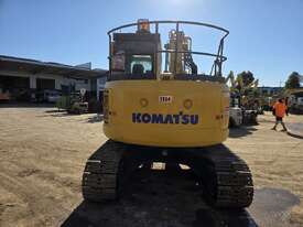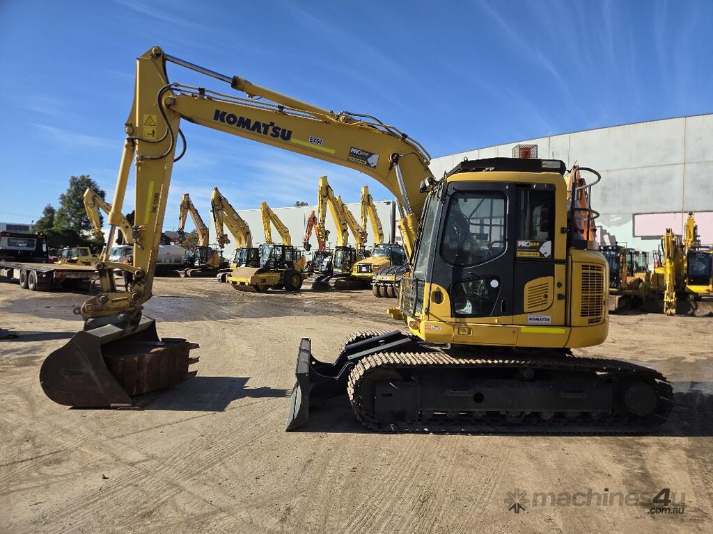 USED 2018 KOMATSU PC138US-8 15T EXCAVATOR WITH REDUCED RADIUS TAIL, LOW 3376 HOURS, DOZER BLADE, STEEL TRACKS, HYDRAULIC HITCH, FULL A/C CABIN WITH ROPS, TWO WAY FLOW AUXILIARY HYDRAULICS, REAR VIEW CAMERA, SAFETY HANDRAILS, CHECK VALVES, UHF RADIO, E-STOPS, FULL CIVIL SPEC, GP AND MUD BUCKET.