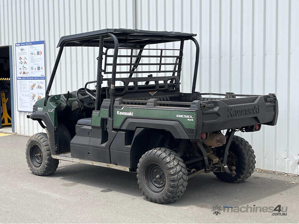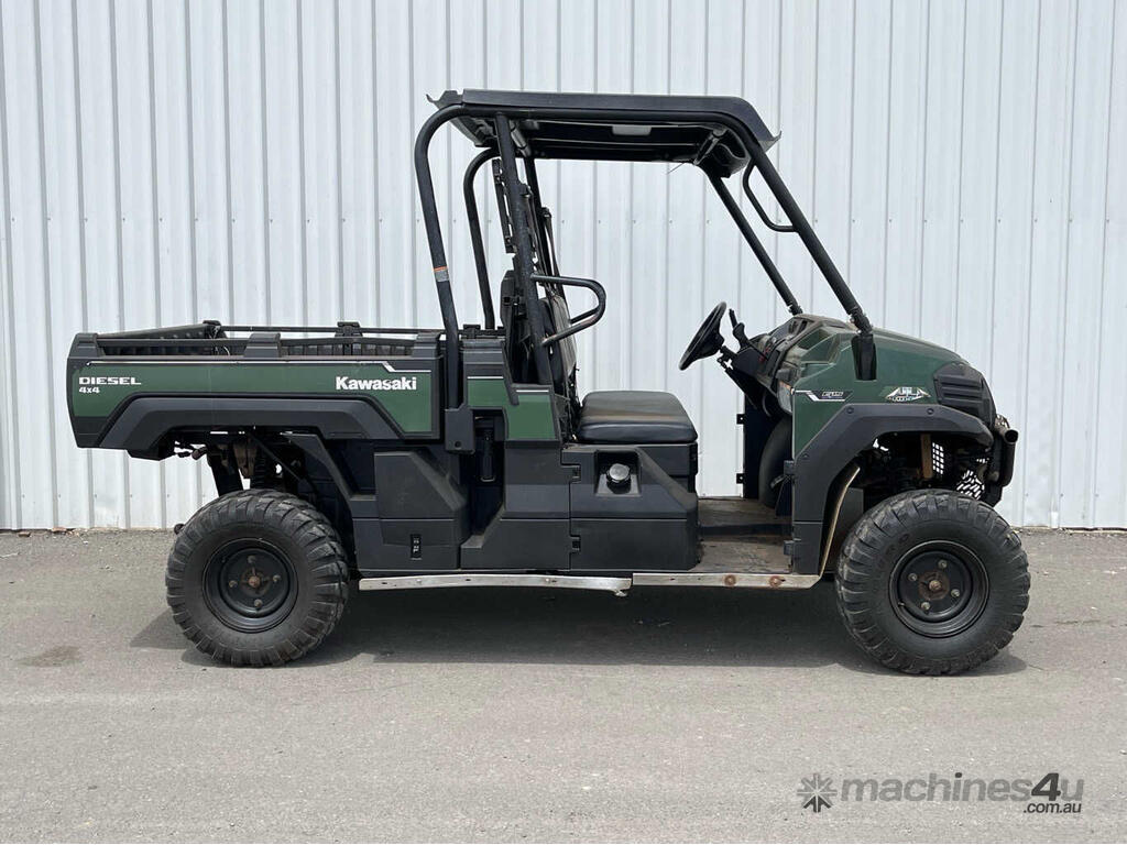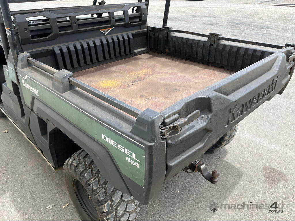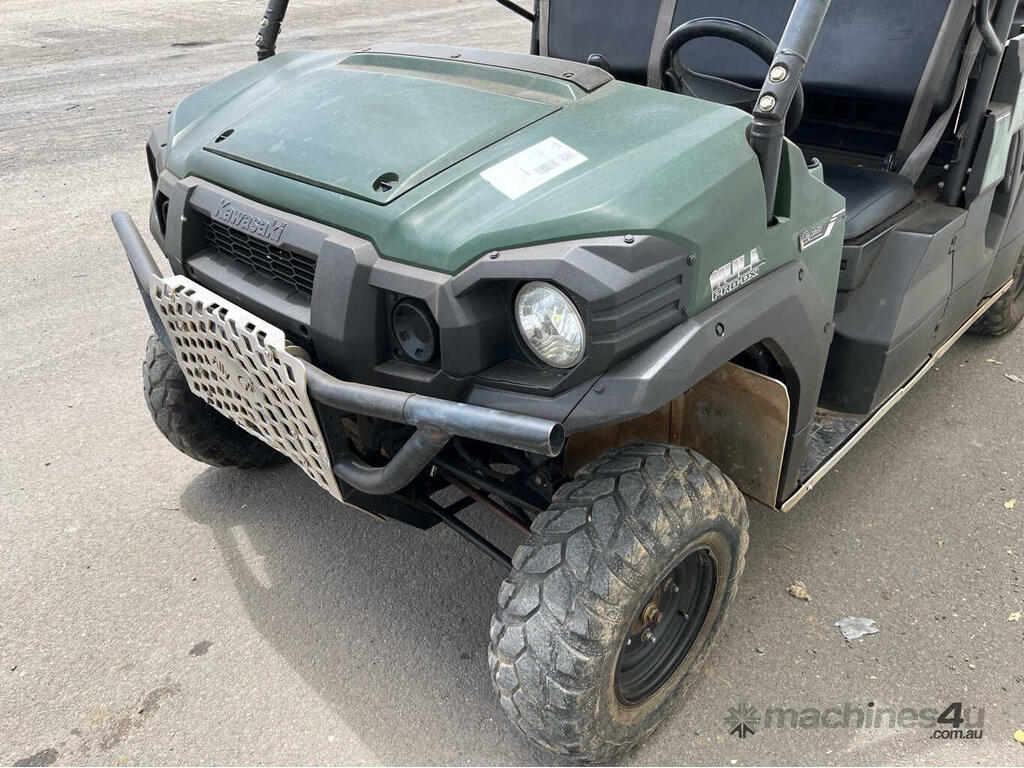 CP: CIRCA 2018,Kawasaki,Mule Pro-DX,UTV,3 Cyl,Diesel,25689 (Kms. Showing on Odometer),1898 (Hrs. Showing on Hour meter),Colour: Green,Unregistered,Serial No: JKAAFCE11JB501856,Sold with No Plates