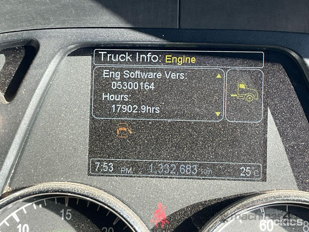CP: 09/2018,Kenworth,T610,Prime Mover,Manual,Air Bag Suspension,Engine #: 80082903,Cummins X15 Engine,6 Cyl,Diesel,18 Gears,1332682 (Kms. Showing on Odometer),17902 (Hrs. Showing on Hour meter),Colour: Red,Unregistered,VIN: 6F5000000JA463440,Key No: 80,Length: 7.35 m,GVM: 26500,GCM: 97000,Sold with No Plates,Key No: 80