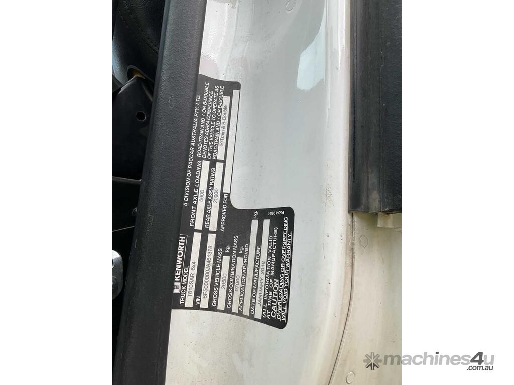 CP: 01/2018,Kenworth,T610SAR,Prime Mover & Tipper Set Combination,Automatic,Airbag Suspension,Engine #: 80017033,Cummins X15,14.9 Ltr,6 Cyl,Diesel Turbo,1173942 (Kms. Showing on Odometer),23245 (Hrs. Showing on Hour meter),Colour: White,Rego. No: 1GLD524 WA,Rego expiry: 31/03/2027,VIN: 6F5000000JA461378,Length: 7.6 M,GVM: 26500,GCM: 97000,Plates to All