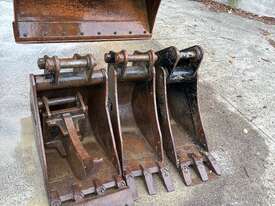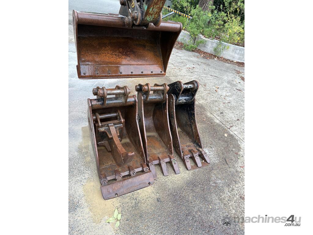 1200mm mud bucket, 450mm GP bucket, 2 x 300mm dig buckets, one has teeth the other has a blade, single Tyne ripper