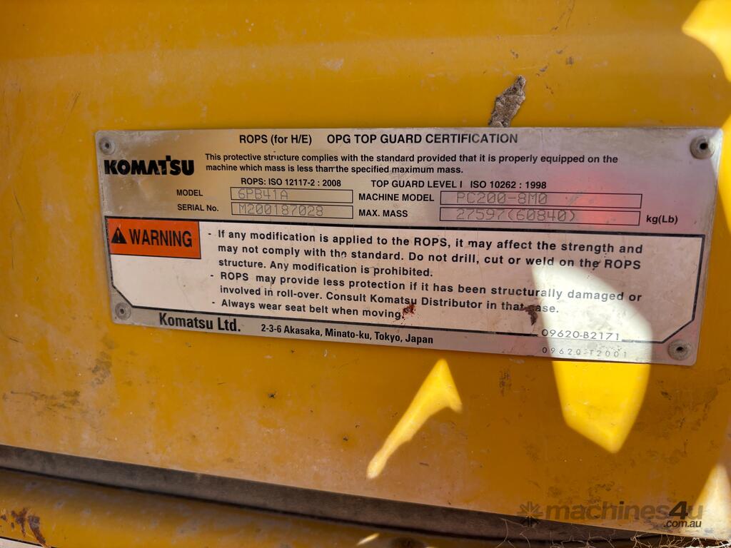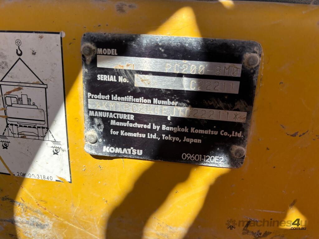 CP: CIRCA 2018,Komatsu,PC200-8,Excavator (Steel Tracked),6 Cyl,Diesel,Odometer not visible,6960 (Hrs. Showing on Hour meter),Colour: Yellow,Unregistered,Serial No: KMTPC244EJTC22211,ROPS No: M,Sold with No Plates