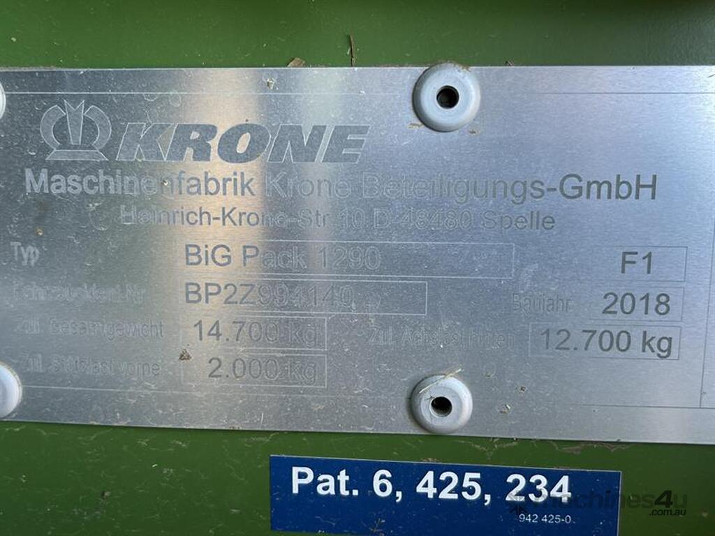 2018 KRONE 1290 HDP XC Baler HAY & SILAGE - 42,000 bales approximately, with chopper, Gazeeka moisture meter, PTO drive, auto greaser, has monitors, regularly serviced. Located Mallawa NSW. MRE Online Auction 27-29th September 2021.