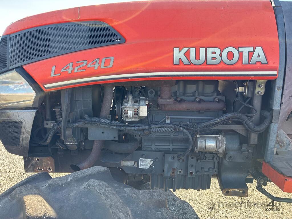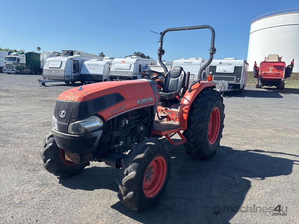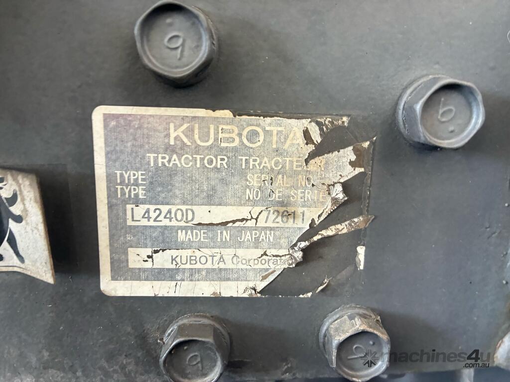 CP: CIRCA 2018,Kubota,L4240D,Tractor,4 Cyl,Diesel,Odometer not visible,1384 (Hrs. Showing on Hour meter),Colour: Orange,Rego. No: 9087C3 QLD,Serial No: 72611,Sold with No Plates,Key No: 97