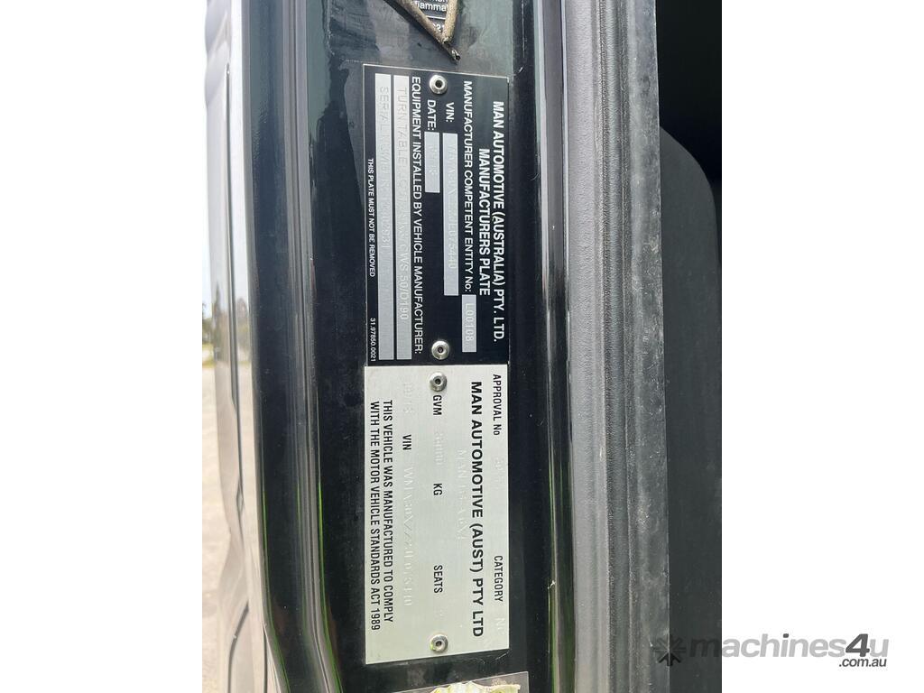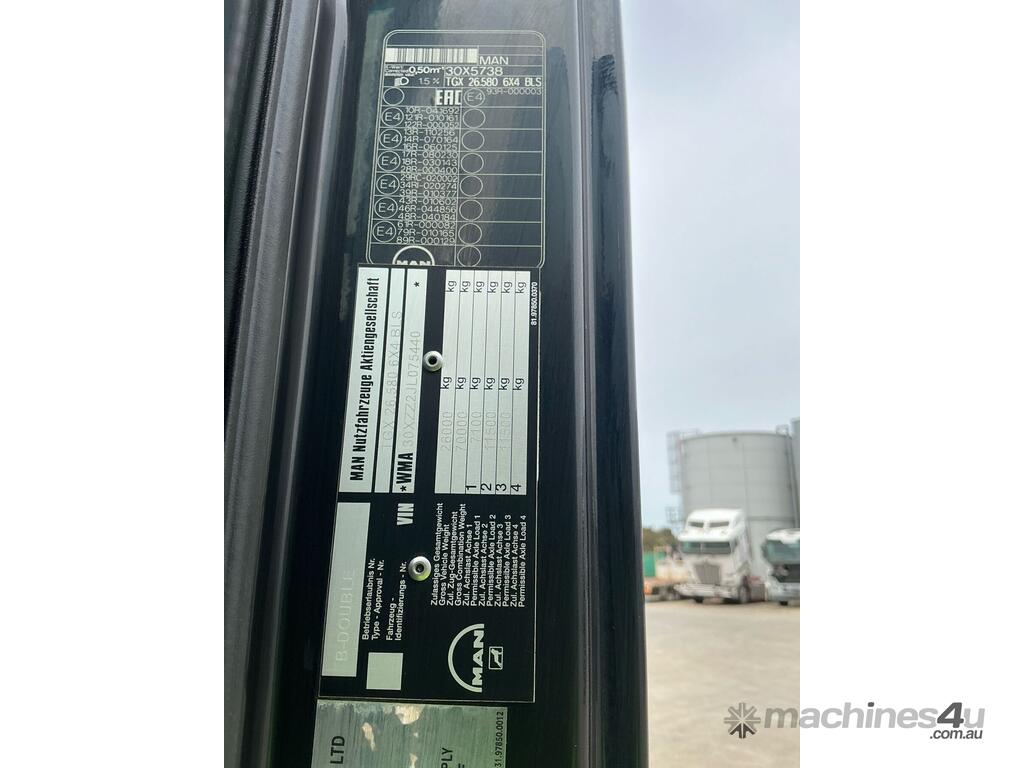 CP: 09/2018,MAN,TGX 26.580,6x4 Prime Mover,Automatic,Air Suspension ,Engine #: 5076,6 Cyl,Diesel,859289 (Kms. Showing on Odometer),13691 (Hrs. Showing on Hour meter),Colour: Black,Rego. No: NP(XV94UD), Unregistered,VIN: WMA30XZZ2JL075440,Key No: 213,GVM: 26000,GCM: 70000,Sold with No Plates,Key No: 213