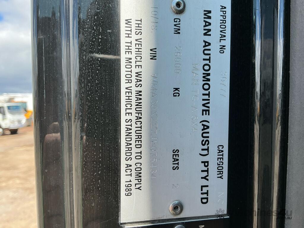 CP: 10/2018,MAN,TGX 26.580,Prime Mover Sleeper Cab,Automatic & Manual Mode,Airbag ,6 Cyl,Diesel Turbo,648447 (Kms. Showing on Odometer),5038 (Hrs. Showing on Hour meter),Colour: Black,Rego. No: NP(XW61BC), Unregistered NAT,VIN: WMA30XZZ7JL075434,Key No: 553,Length: 21 ft,GVM: 26000,GCM: 70000,Sold with No Plates,Key No: 553