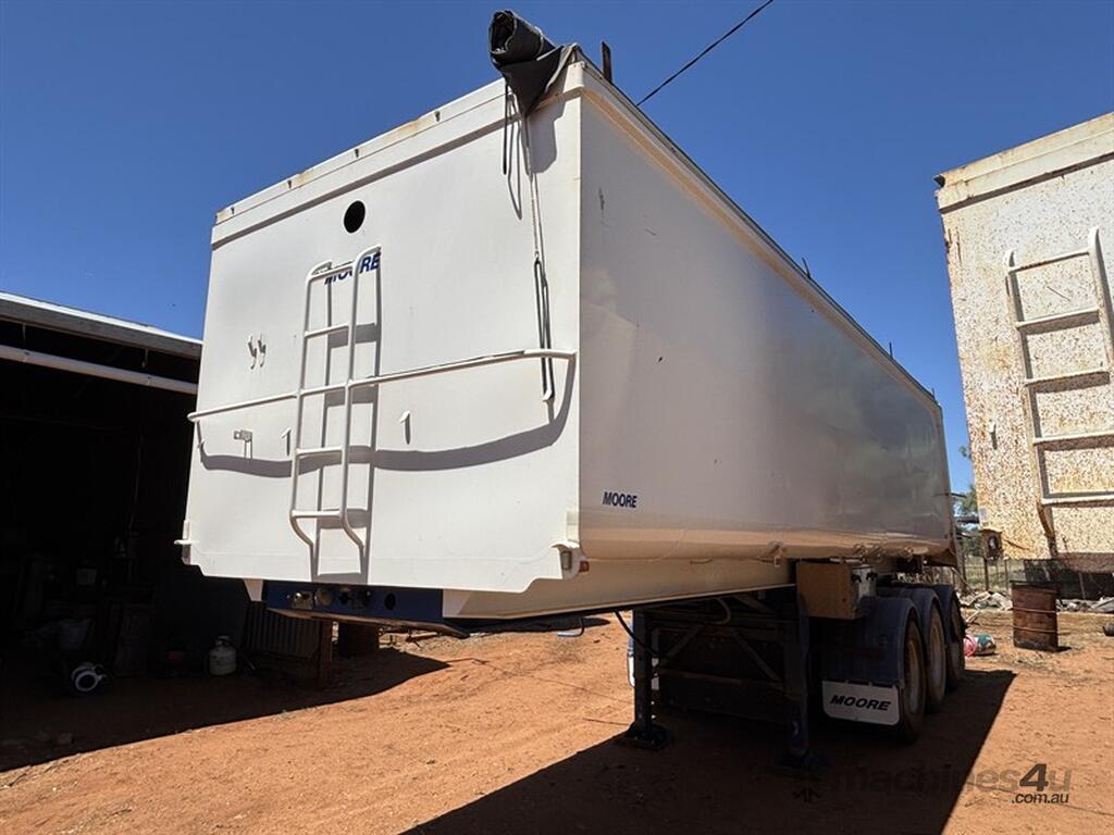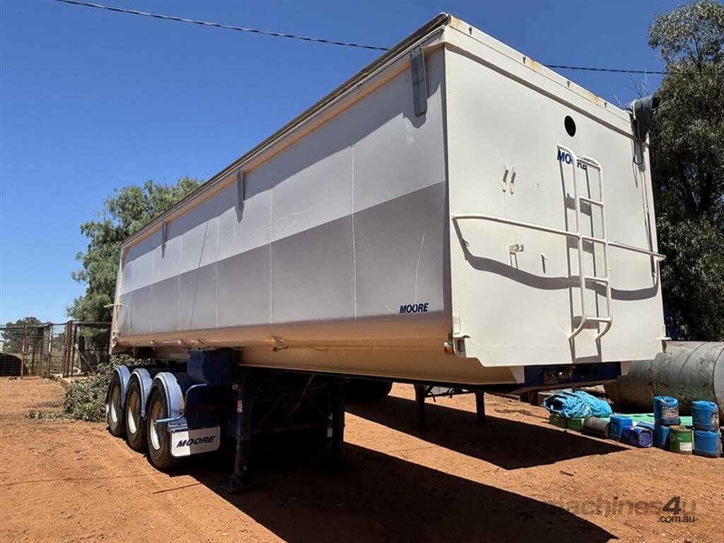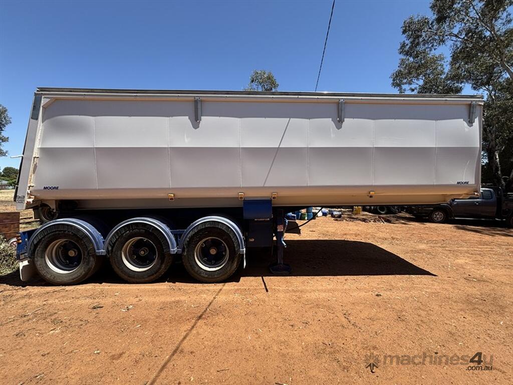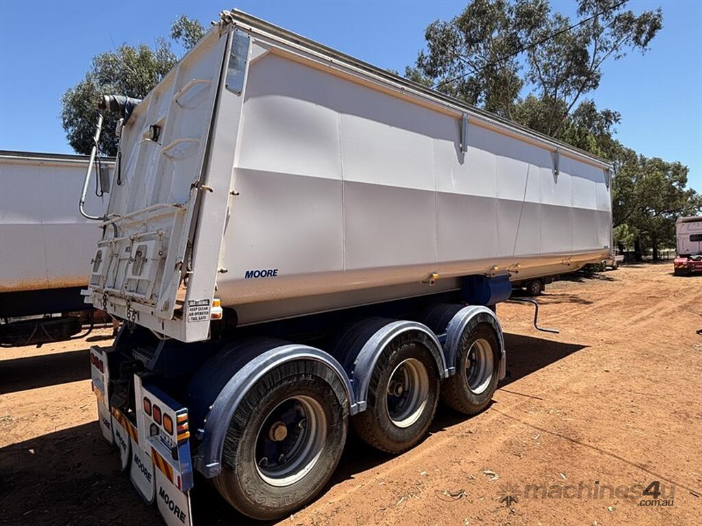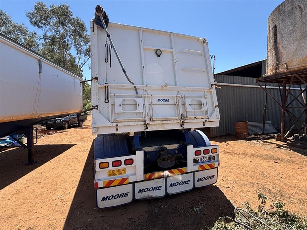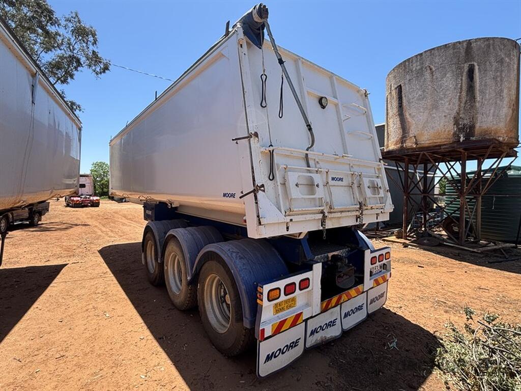 2018 MOORE SLIDING A-TRAILER, VIN: 6V9LMTSMTJP002151, 27' x 6' body, road train lead BPW axles, airbag suspension, spider rims, 3-way tailgate, adjustable king pin with 3 positions, greasless turn table, just had all new shocks, roll over tarp, excellent condition, Jan 2026 rego, located Narromine, available through MRE Auctions