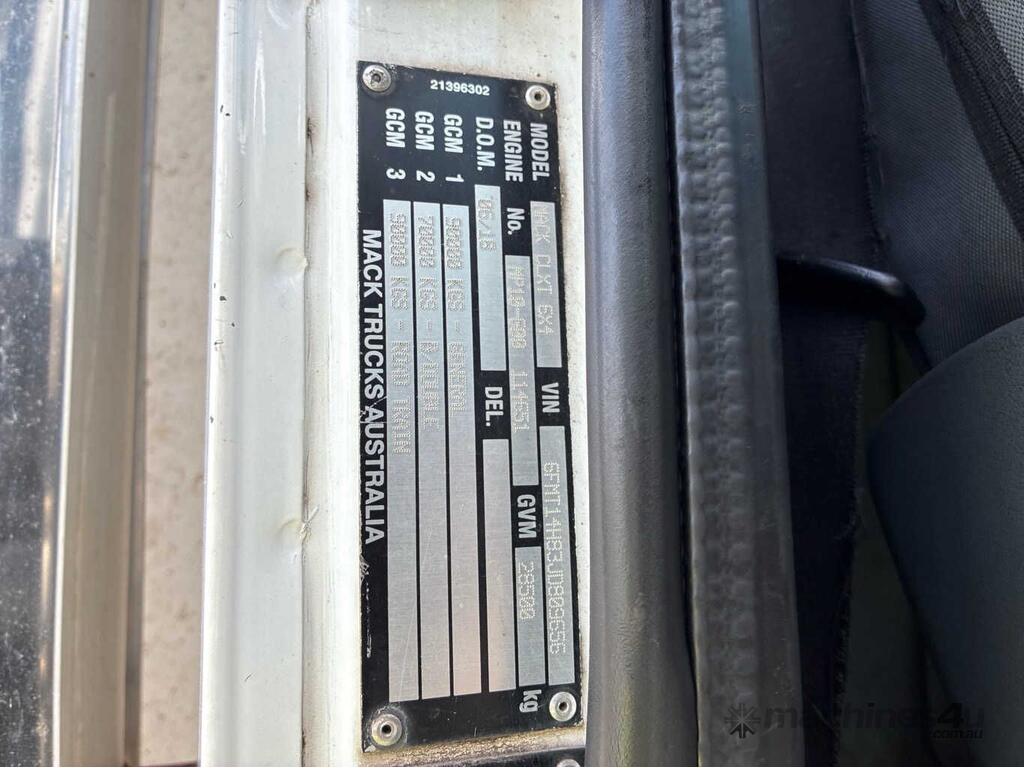CP: 06/2018,Mack,Superliner,Prime Mover,Automatic,Airbag,MP10,6 Cyl,Diesel,1254086 (Kms. Showing on Odometer),19203 (Hrs. Showing on Hour meter),Colour: White,Unregistered,VIN: 6FMT14H83JD809656,Key No: 187,GVM: 28500,GCM: 90000,Sold with No Plates,Key No: 187