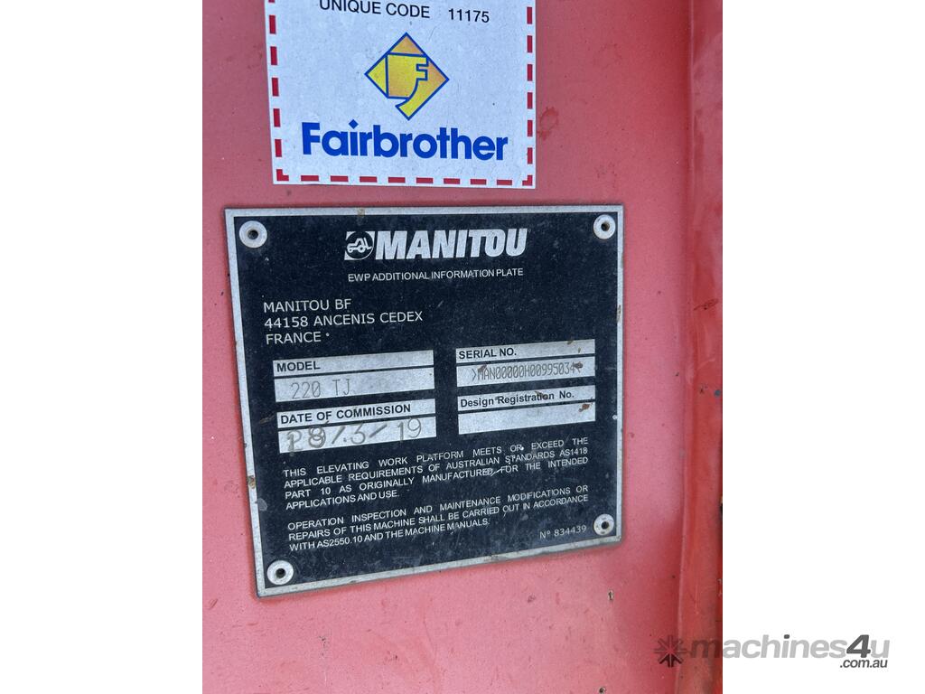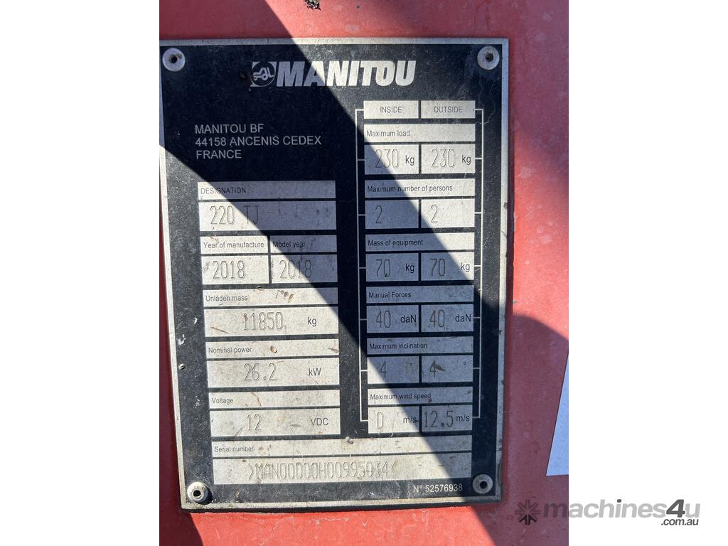2018 Manitou 220TJ Straight Boom :      $51,750 AUD($56,925 Inc. GST)