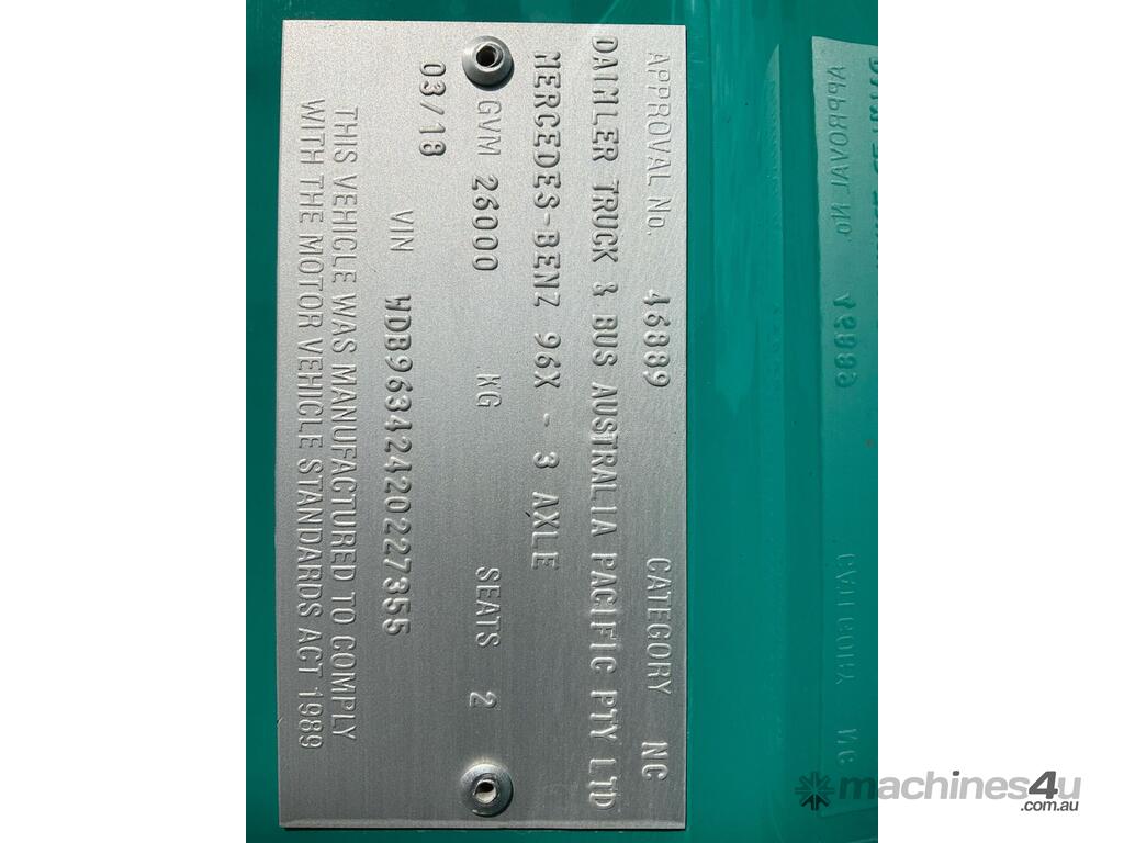 CP: 03/2018,Mercedes Benz,Actros 2663,Prime Mover Sleeper Cab,Automatic,Airbags ,Bluetec 6,6 Cyl,Diesel Turbo,602548 (Kms. Showing on Odometer),10363 (Hrs. Showing on Hour meter),Colour: Green,Unregistered,VIN: WDB7355,Key No: 348E,Length: 6.6 m,GVM: 26000,GCM: 90000,Sold with No Plates,Key No: 348E