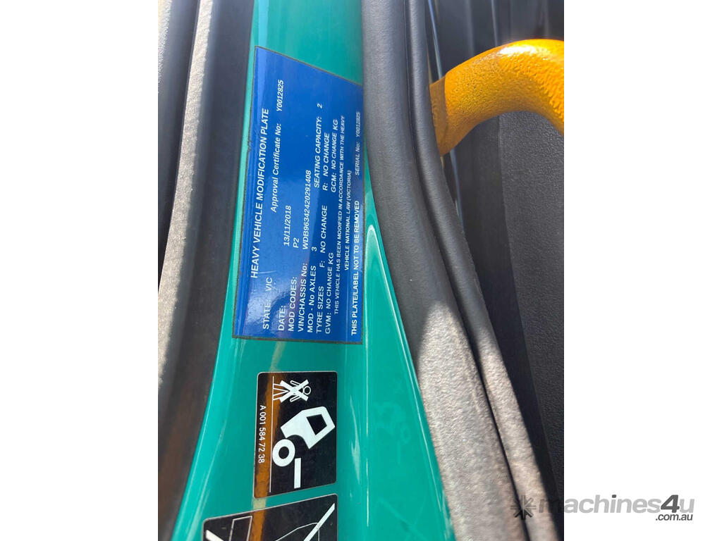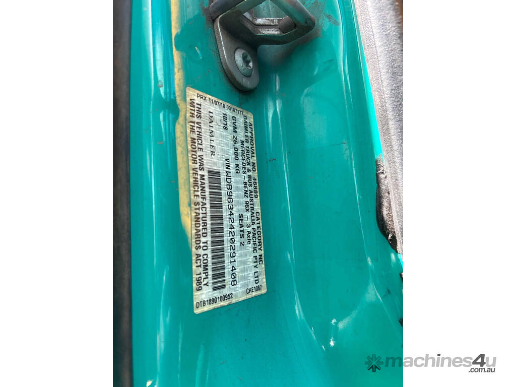 CP: 10/2018,Mercedes-Benz,Actros,Prime Mover,Automatic,Diesel,1082650 (Kms. Showing on Odometer),Hourmeter not visible,Colour: Green,Rego. No: NP(XW28CP), Unregistered VIC,VIN: WDB1408,GVM: 26000,GCM: 70000,Sold with No Plates,WOVR Status: WOVR N/A,Incident Type: Not Applicable