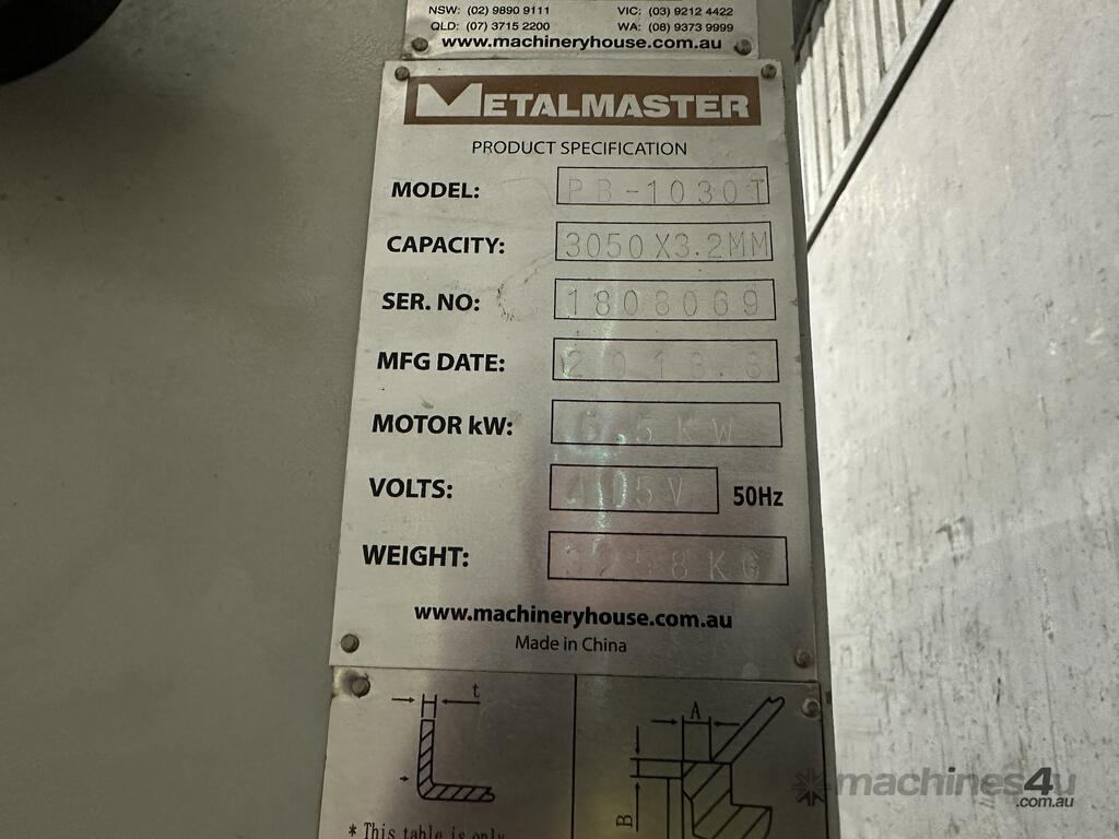 2018 Metal Master PB-1030T Hydraulic Panbrake :      Ask for Price