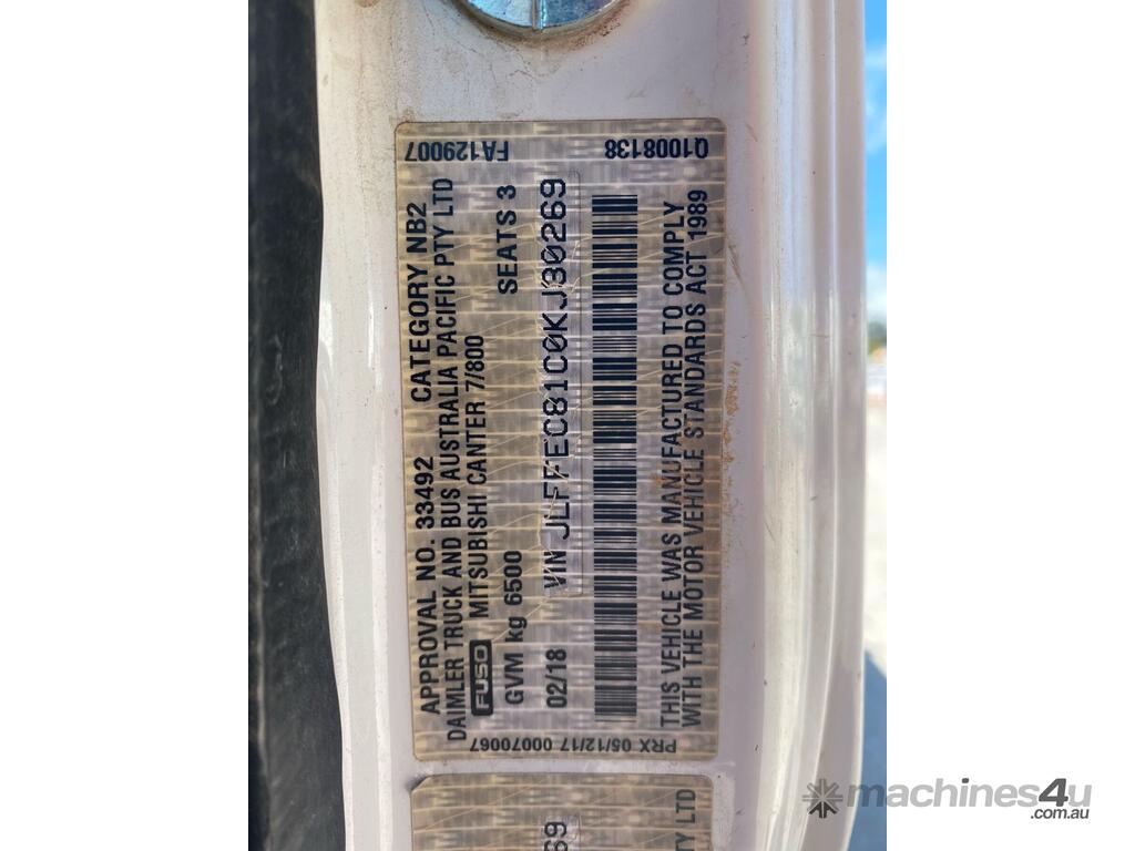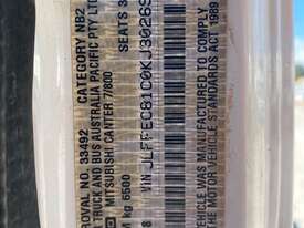 CP: 02/2018,Mitsubishi,Canter 7/800,Tipper,Automatic,Spring,4 Cyl,Diesel,Turbo,Odometer not visible,Hourmeter not visible,Colour: White,Rego. No: NP(CR67SM), Unregistered NSW,VIN: JLFFEC81C0KJ30269,Length: 10 ft,GVM: 6500,GCM: 10000,Sold with No Plates,WOVR Status: WOVR N/A,Incident Type: Malicious
