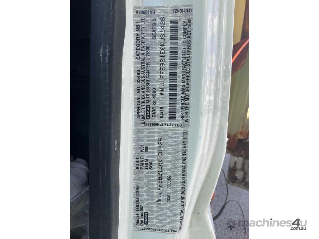 CP: 04/2018,Mitsubishi,Canter L7/800 ,Refrigerated Pantech,Automatic,Spring ,4 Cyl,Diesel,Turbo,222676 (Kms. Showing on Odometer),Hourmeter not visible,Colour: White,Rego. No: NP(DG40RU), Unregistered NSW,VIN: JLFFEB21E0KJ31426,Length: 5.6 m,GVM: 4500,GCM: 8000,Sold with No Plates,WOVR Status: Statutory Write-Off,Incident Type: Impact