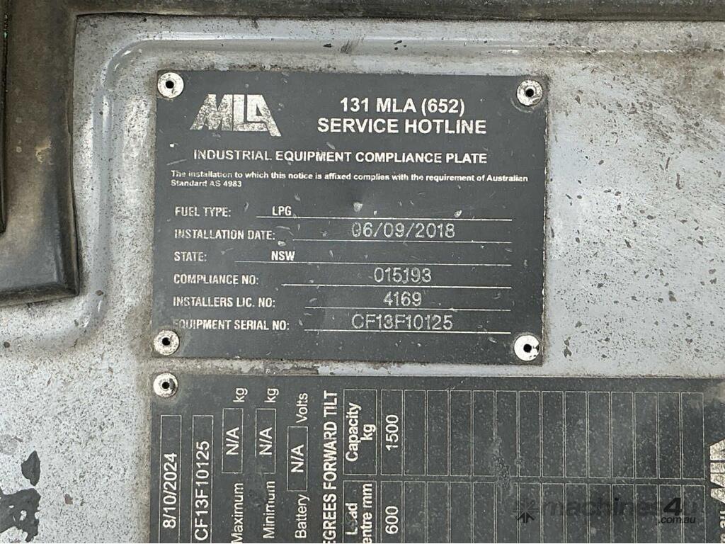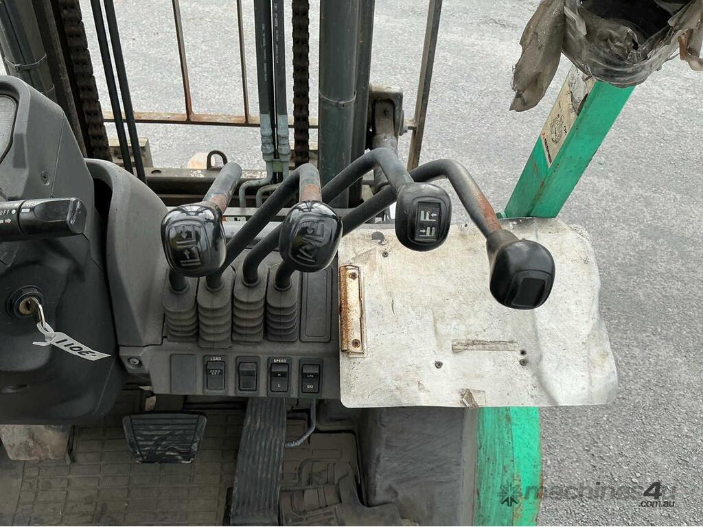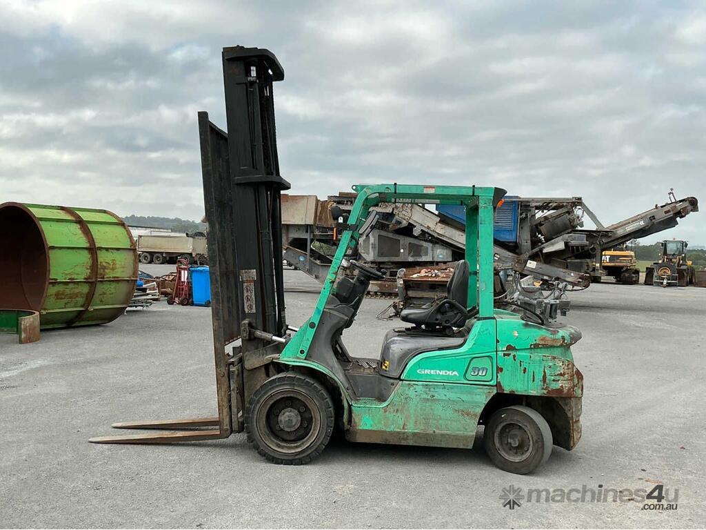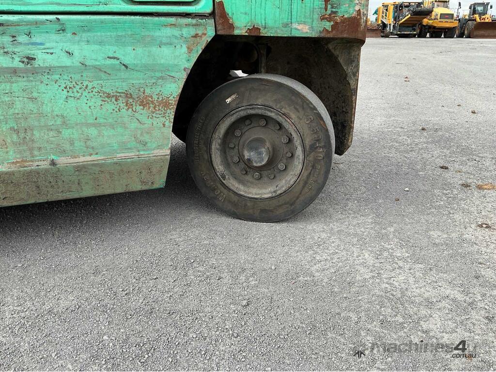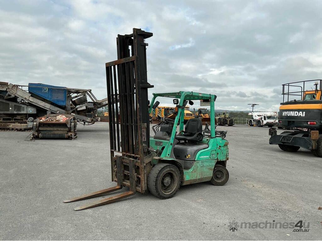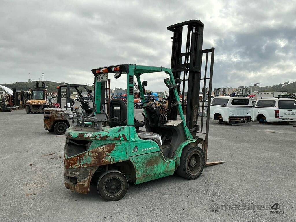 CP: CIRCA 2018,Mitsubishi,FG30,Counter Balance Forklift,4 Cyl,LPG only,Odometer not visible,8315 (Hrs. Showing on Hour meter),Colour: Green,Unregistered NSW,Serial No: CF13F10125,ROPS No: undefined,FOPS No: undefined,Sold with No Plates,Key No: NO KEY