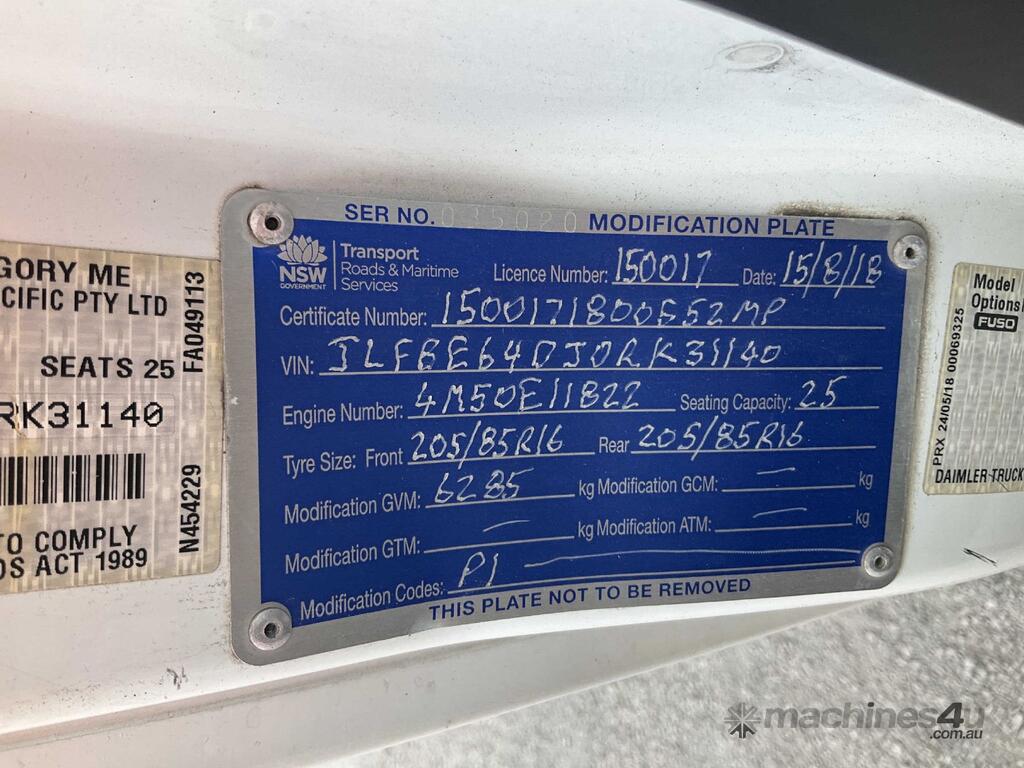CP: 08/2018,Mitsubishi,Fuso BE600 Rosa,Bus,Automatic,Spring,Engine #: 4M50E11822,4 Cyl,Diesel Turbo,219715 (Kms. Showing on Odometer),Hourmeter not visible,Colour: White,Rego. No: CR09GH NSW,Rego expiry: 12/04/2026,VIN: JLFBE64DJ0RK31140,Key No: 540S,Length: 8 m,GVM: 6285,Sold with No Plates,Key No: 540S