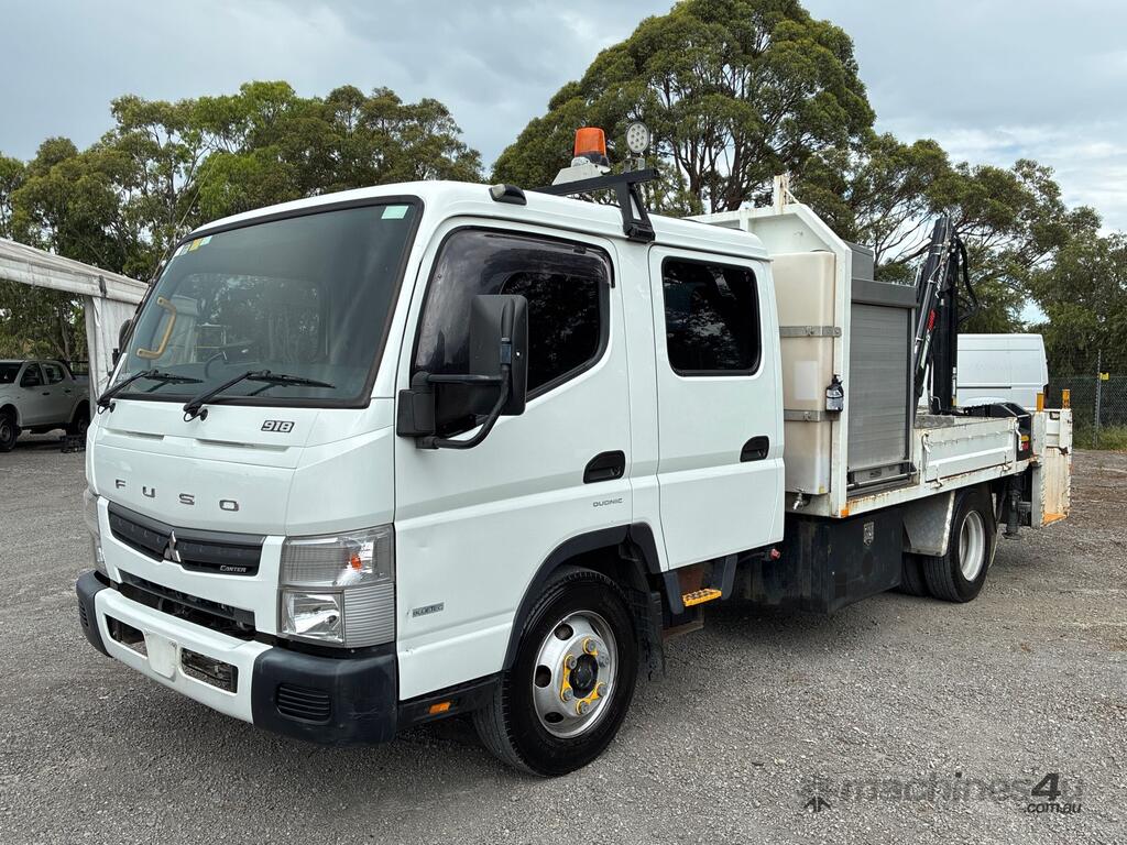 CP: 04/2018,Mitsubishi Fuso,Canter 918,Crew Cab Service Body / Crane Truck,Automatic,Spring,Engine #: 4P10D14070,4 Cyl,Diesel Turbo,100312 (Kms. Showing on Odometer),Hourmeter not visible,Colour: White,Rego. No: NP(XN87EW), Unregistered NAT,VIN: JLFFEB91G0KJ30050,Key No: 184,Length: 6.9 m,GVM: 7990,GCM: 11700,Sold with No Plates,Key No: 184