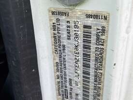 CP: 07/2018,Mitsubishi Fuso,Canter L7/800,Table Top,Automatic,Diesel,200590 (Kms. Showing on Odometer),Hourmeter not visible,Colour: White,Rego. No: NP(1NK9VK), Unregistered VIC,VIN: JLFFEA21E0KJ30195,GVM: 4500,GCM: 8000,Sold with No Plates,WOVR Status: Repairable Write-Off,Incident Type: Impact
