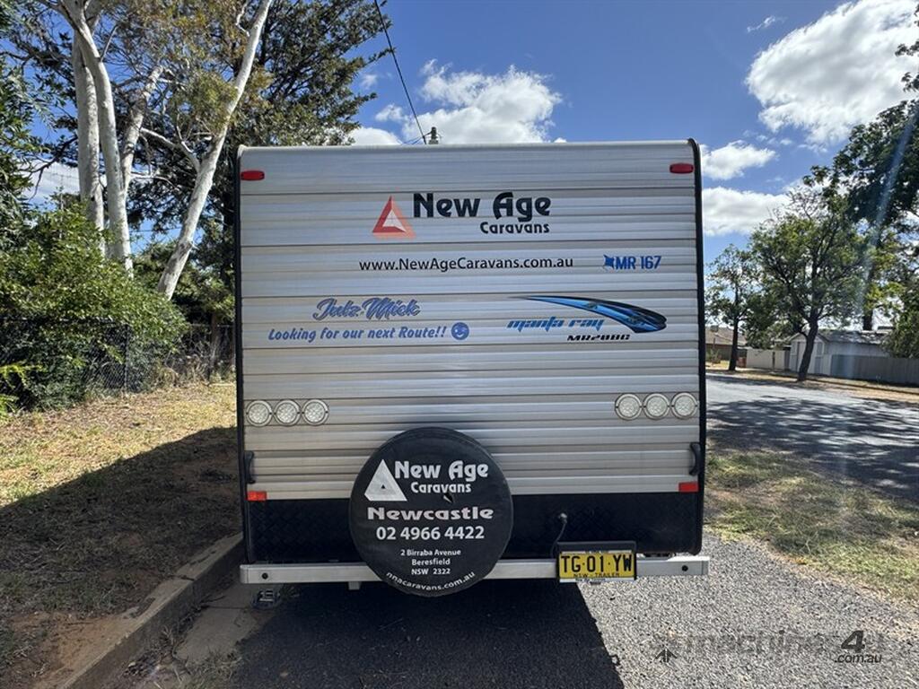2018 New Age Manta Ray MR20BC caravan, one owner and set up for full off-grid travel. Features rock n roll suspension, tunnel boot, dual water tanks (60L + 80L), 110L grey water tank, solar, air conditioning, combo shower/toilet, Clarion sound system and TV/DVD combo. Upgrades include larger fridge, front toolboxes, A-frame extension, external shower and table/bed conversion. Comes with fully enclosed annexe (used twice), brand new awning. Located Narromine NSW