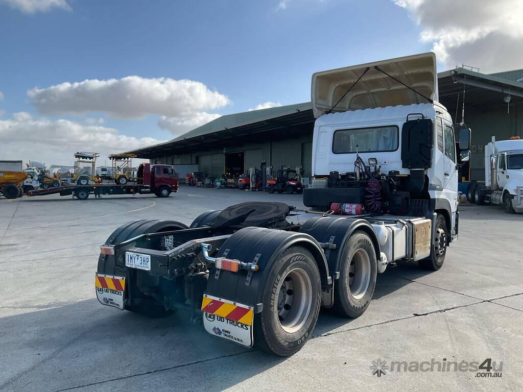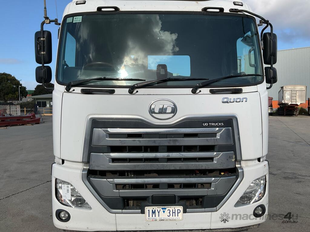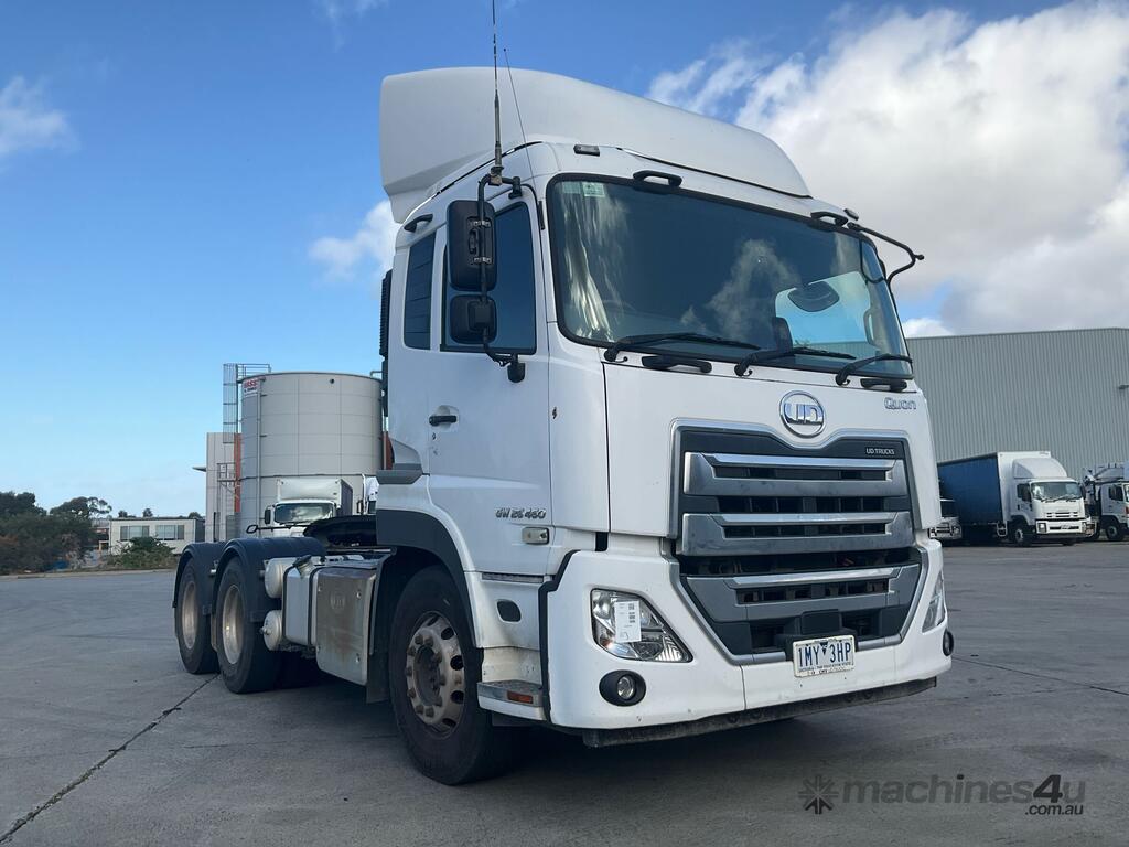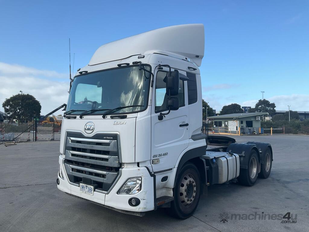 CP: 04/2018,Nissan UD,Quon GW26 460,Prime Mover,Automatic,Air Bag Suspension,6 Cyl,Diesel,453328 (Kms. Showing on Odometer),11834 (Hrs. Showing on Hour meter),Colour: White,Rego. No: NP(1MY3HP), Unregistered VIC,VIN: JNCMB22D9JU031498,Key No: 113,GVM: 26000,GCM: 60000,Sold with No Plates,Key No: 113