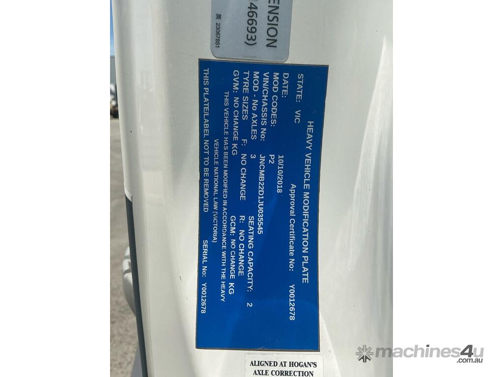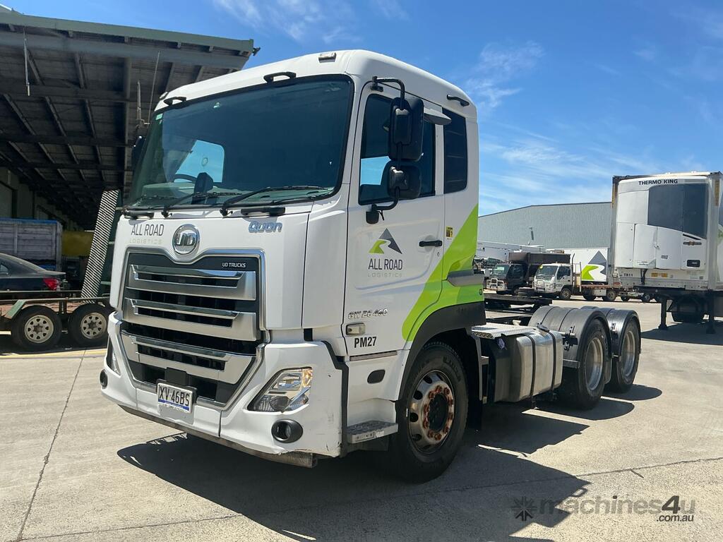 CP: 08/2018,Nissan UD,Quon GW26 460,Prime Mover,Automatic,Airbag Suspension,6 Cyl,Diesel,543167 (Kms. Showing on Odometer),15679 (Hrs. Showing on Hour meter),Colour: White,Rego. No: NP(XV46BS), Unregistered,VIN: JNCMB22D1JU035545,Key No: 327,GVM: 26000,GCM: 60000,Sold with No Plates,Key No: 327