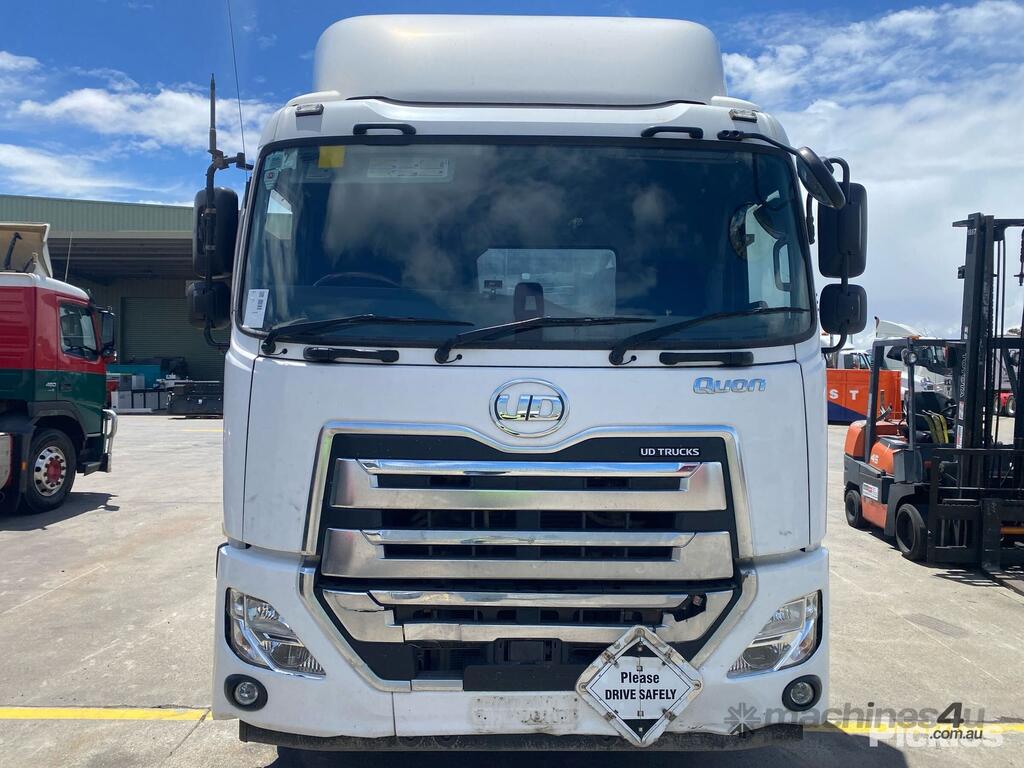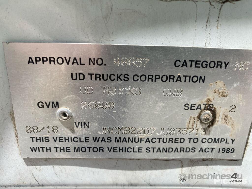 CP: 08/2018,Nissan UD,Quon GW26 460,Prime Mover,Automatic,Air Bag Suspension,6 Cyl,Diesel,257696 (Kms. Showing on Odometer),10176 (Hrs. Showing on Hour meter),Colour: White,Unregistered,VIN: JNCMB22D7JU035713,GVM: 26000,GCM: 60000,Sold with No Plates,WOVR Status: WOVR N/A