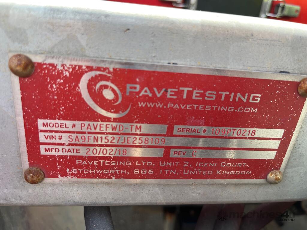 No C/P,Built: 02/2018,Pave Testing ,PAVEFWD-TM,Trailer Mounted Falling Weight Deflectometer,Hubometer not visible,Colour: Red,Rego. No: NP(40514C), Unregistered VIC,VIN: SA9FN1527JE258109,Serial No: 109PT0218,Sold with No Plates