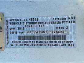 CP: 06/2018,Renault,Pantech,Automatic,4 Cyl,Diesel,149931 (Kms. Showing on Odometer),Hourmeter not visible,Rego. No: 115YEF QLD,VIN: VF1VAE5V6J0775420,Key No: 211,Sold with No Plates,Key No: 211