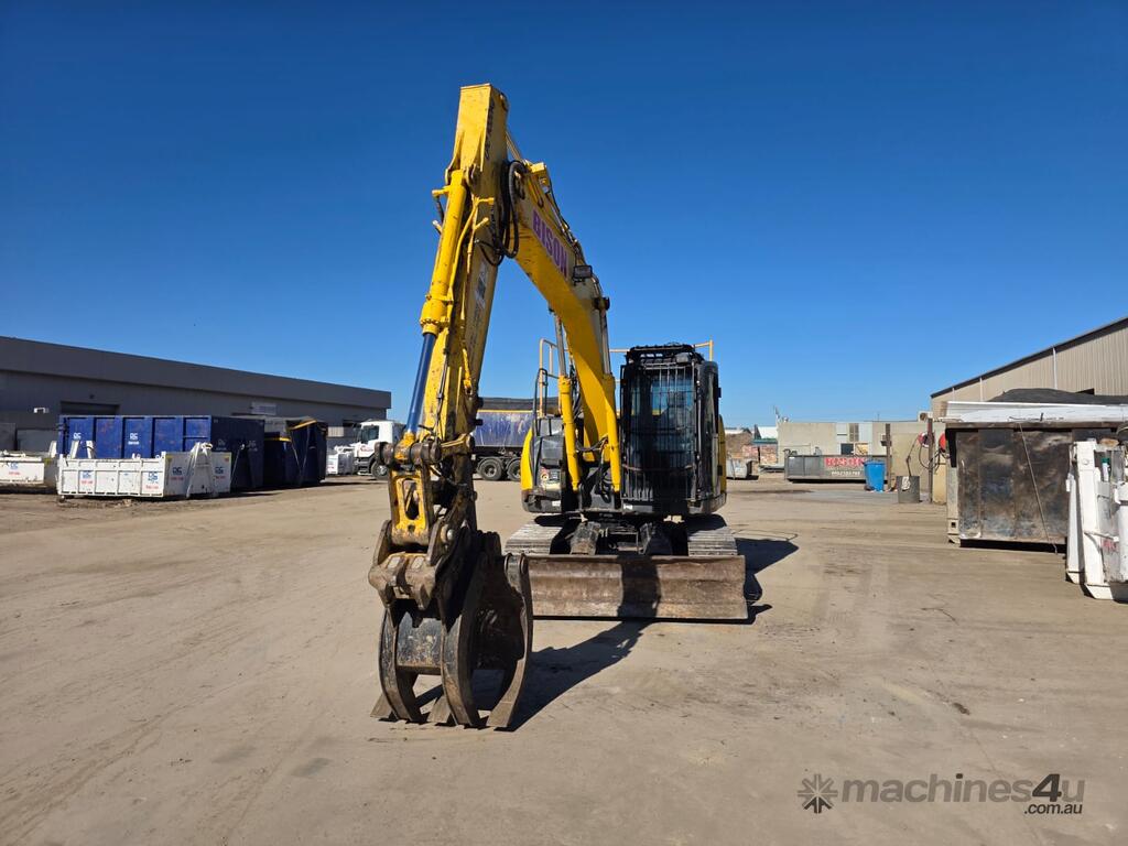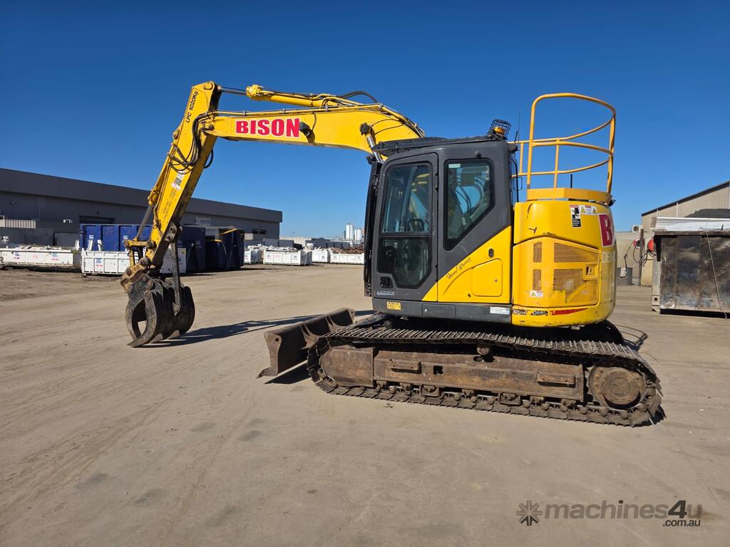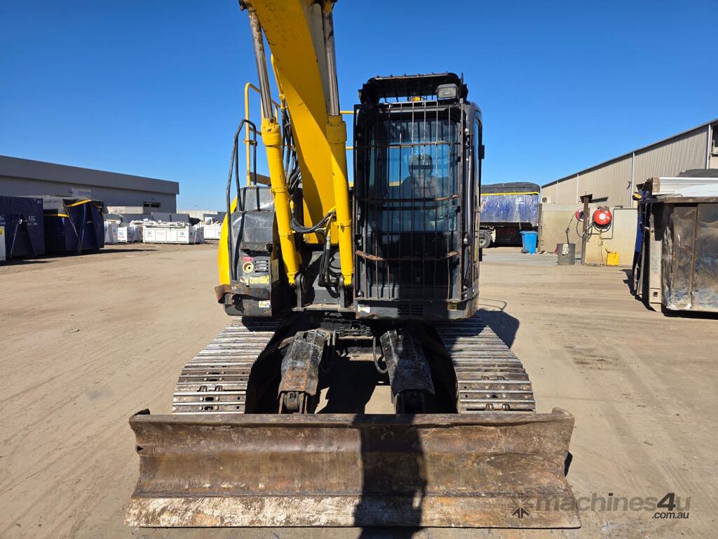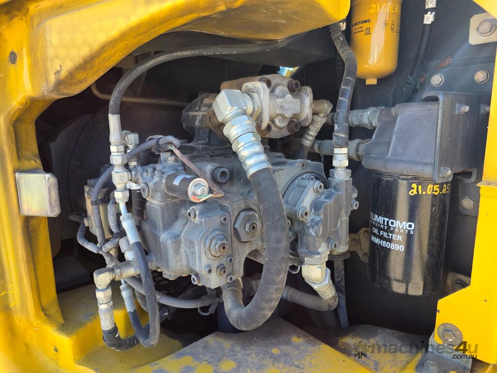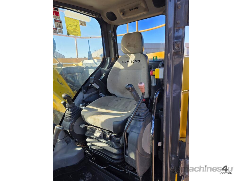 USED 2018 SUMITOMO SH145X-6 CURRENT MODEL 15T EXCAVATOR WITH 7200 HOURS, DOZER BLADE, STEEL TRACKS, HYDRAULIC HITCH, FULL A/C CABIN WITH ROPS, TWO WAY FLOW AUXILIARY HYDRAULICS, REAR VIEW CAMERA, SAFETY HANDRAILS, CHECK VALVES, UHF RADIO, E-STOPS, FULL CIVIL SPEC, FRONT DEMO GUARDING, MUD BUCKET & GP BUCKET.