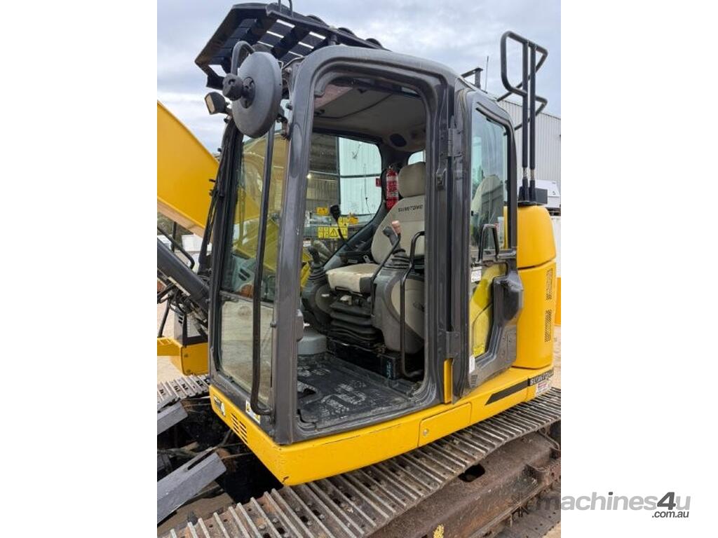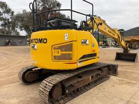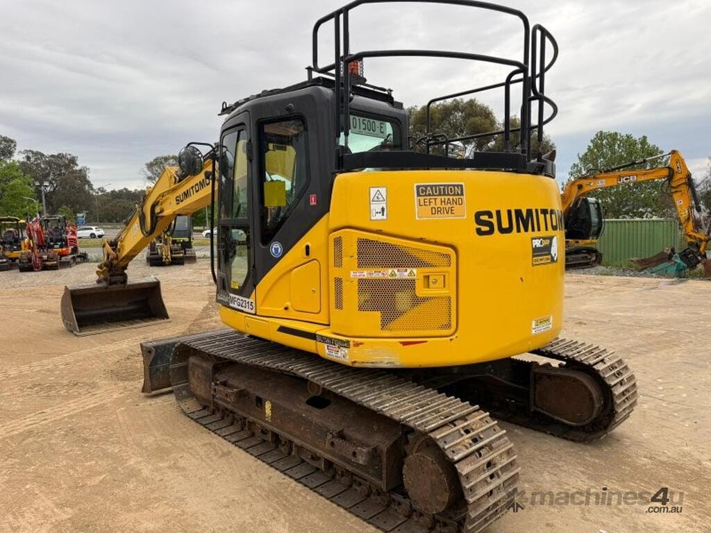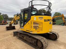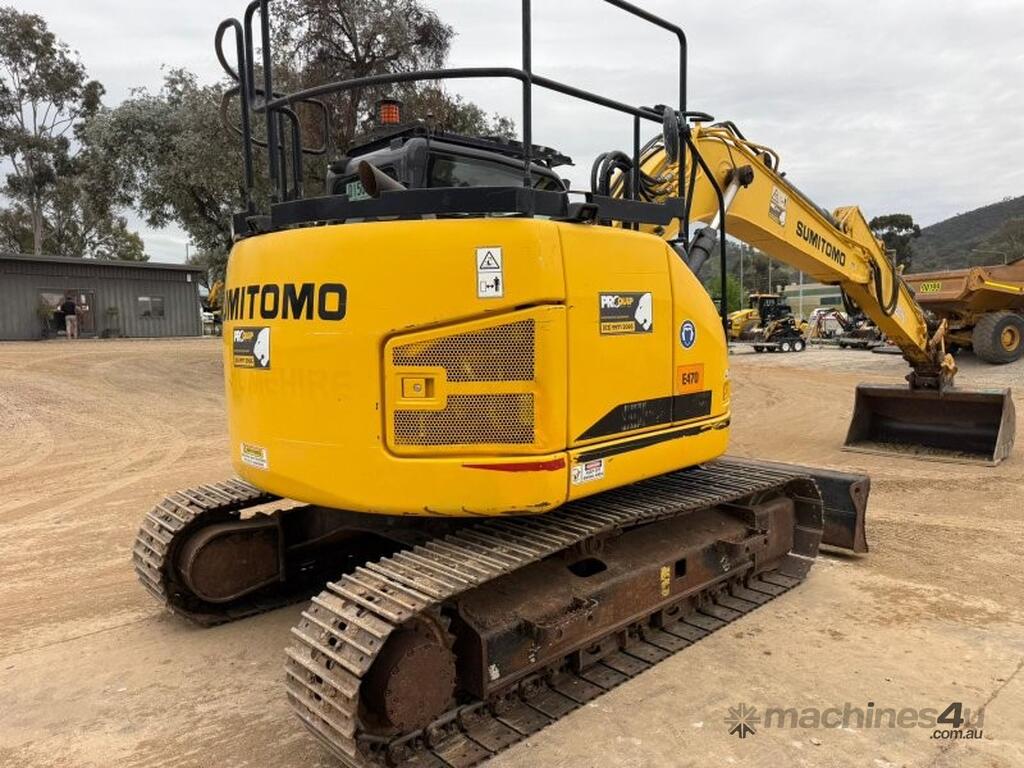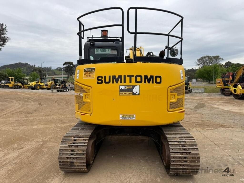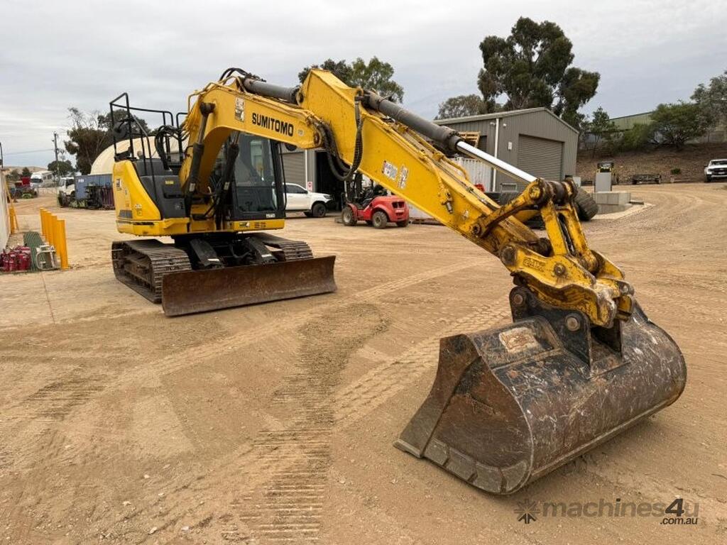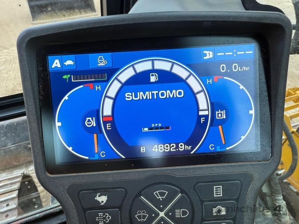 USED 2018 SUMITOMO SH145X-6 CURRENT MODEL 15T EXCAVATOR (E470) WITH 4895 HOURS, DOZER BLADE, STEEL TRACKS, HYDRAULIC HITCH, FULL A/C CABIN WITH ROPS, TWO WAY FLOW AUXILIARY HYDRAULICS, REAR VIEW CAMERA, SAFETY HANDRAILS, CHECK VALVES, UHF RADIO, E-STOPS, FULL CIVIL SPEC, MUD BUCKET & GP BUCKET. 3-MONTH DRIVETRAIN WARRANTY APPLIES