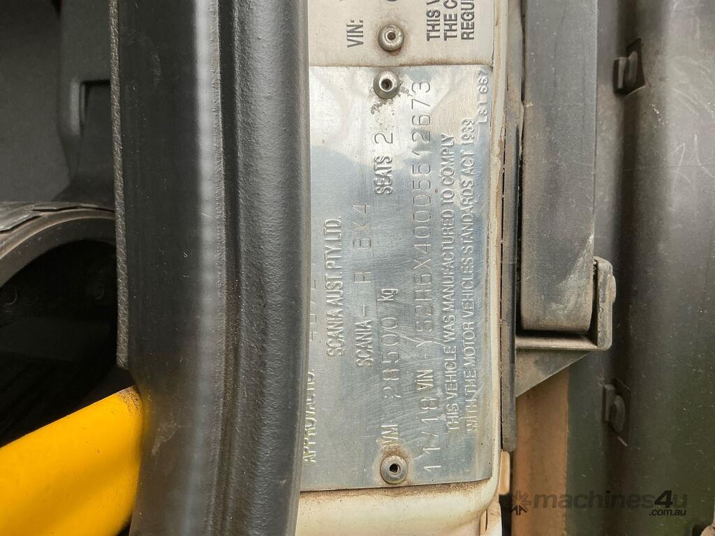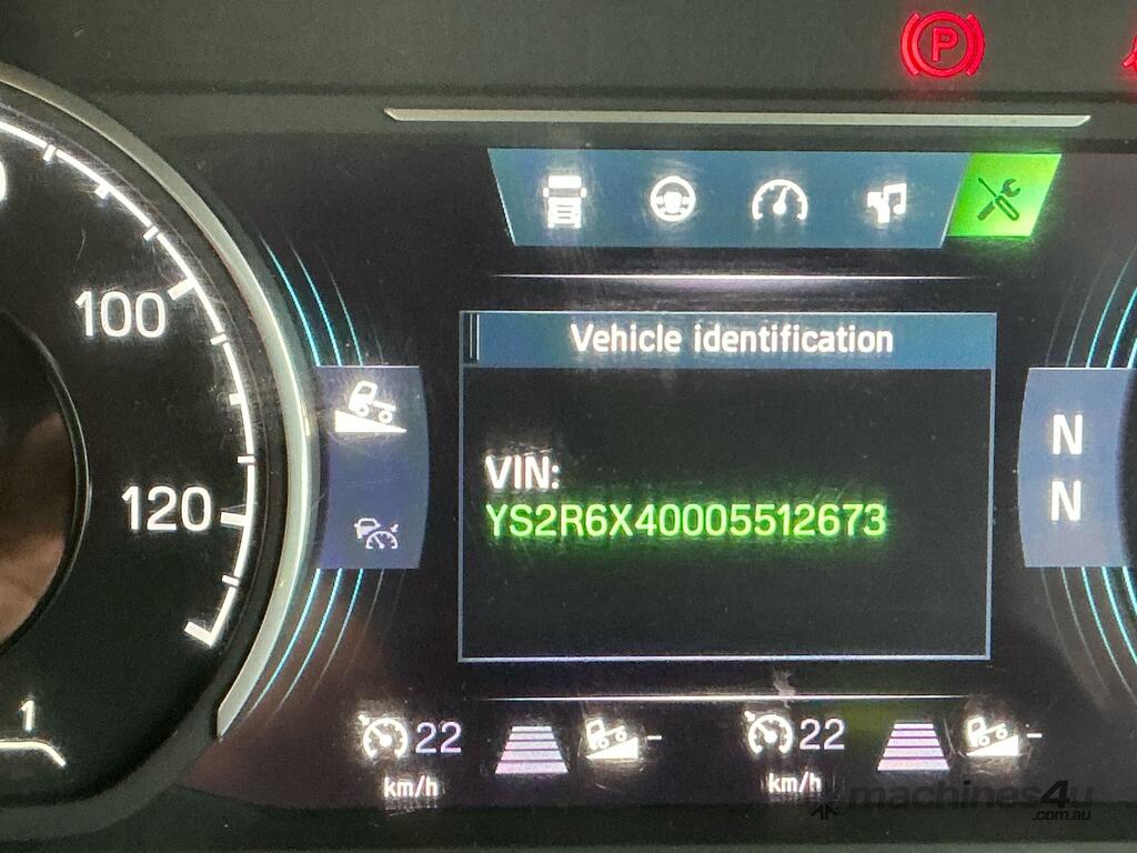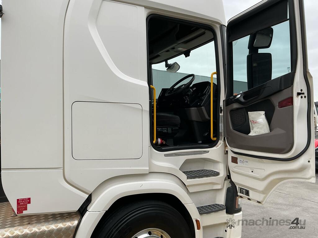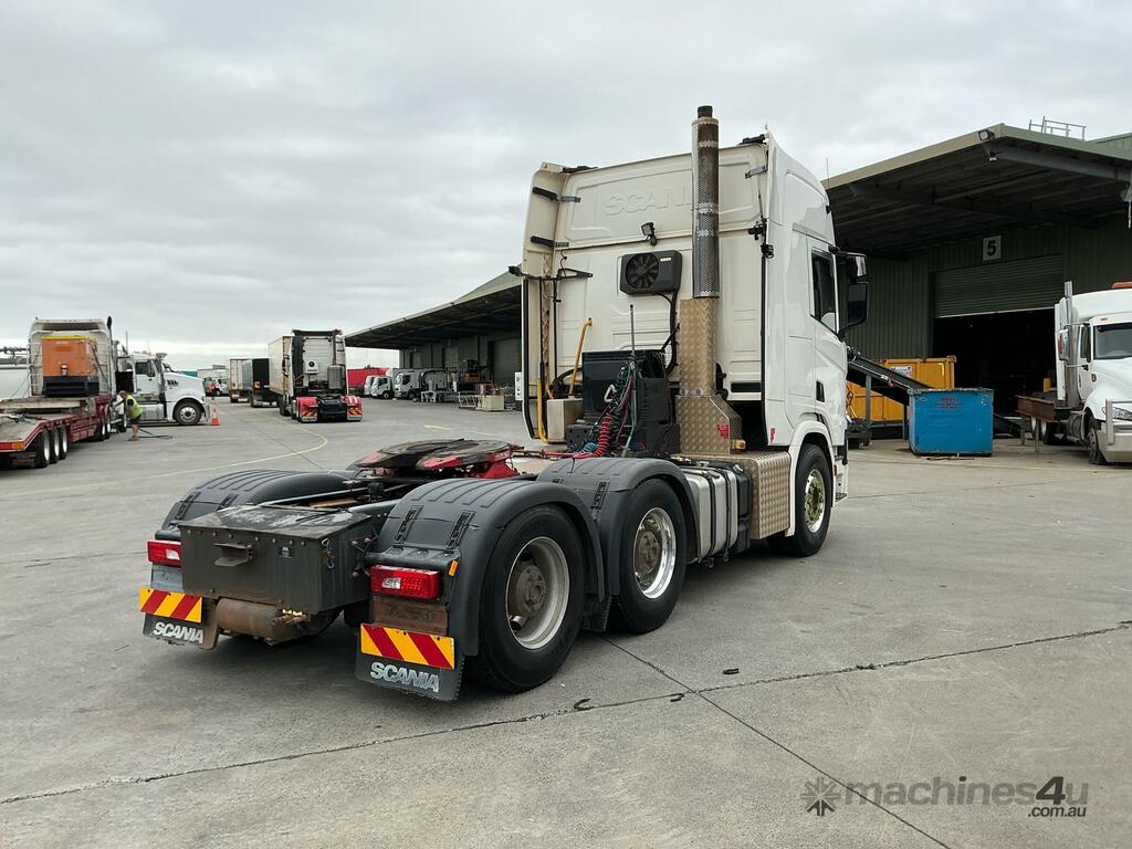 CP: 11/2018,Scania,R620,Prime Mover,Automatic,Airbag ,8 Cyl,Diesel,957236 (Kms. Showing on Odometer),1317 (Hrs. Showing on Hour meter),Colour: White,Unregistered,VIN: YS2R6X3,Length: 7 m,GVM: 28500,GCM: 130000,Sold with No Plates