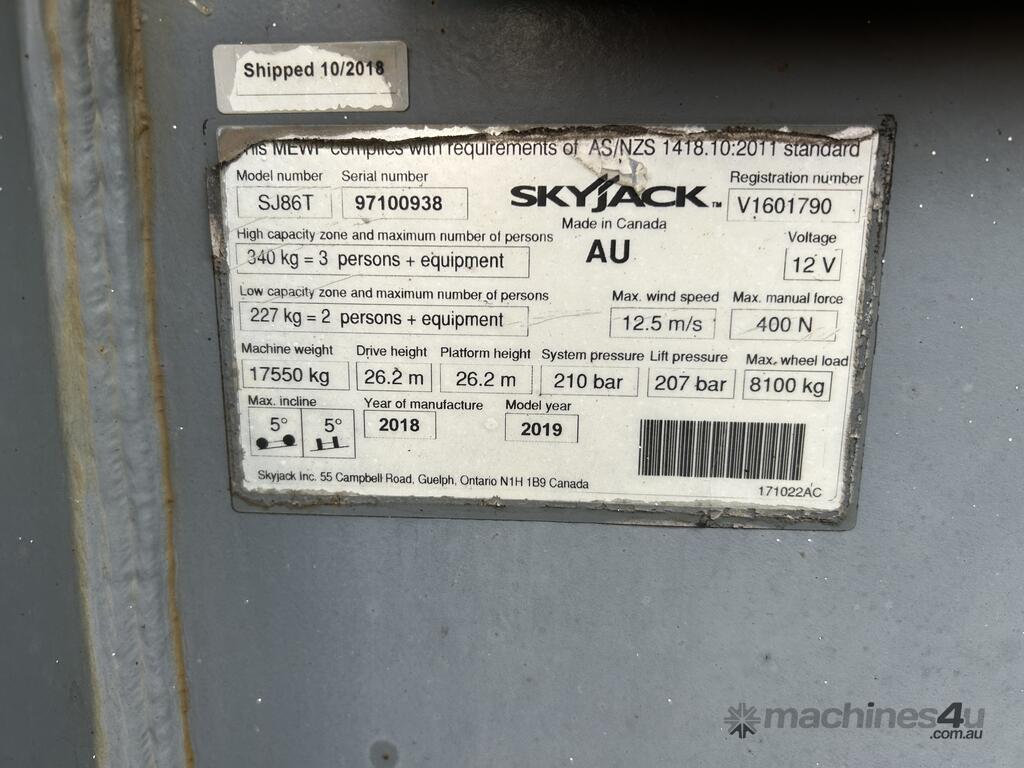 2018 Skyjack SJ86T Straight Boom, Large Basket :      $86,000 AUD($94,600 Inc. GST)