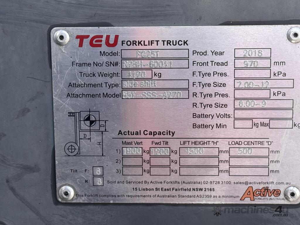 2018 TEU 4 WHEEL COUNTER BALANCE FORKLIFT.
